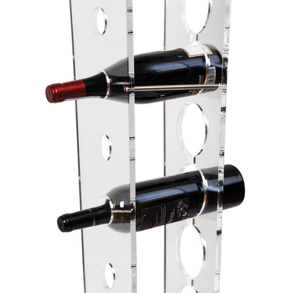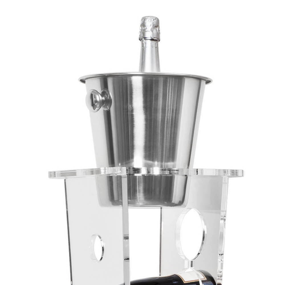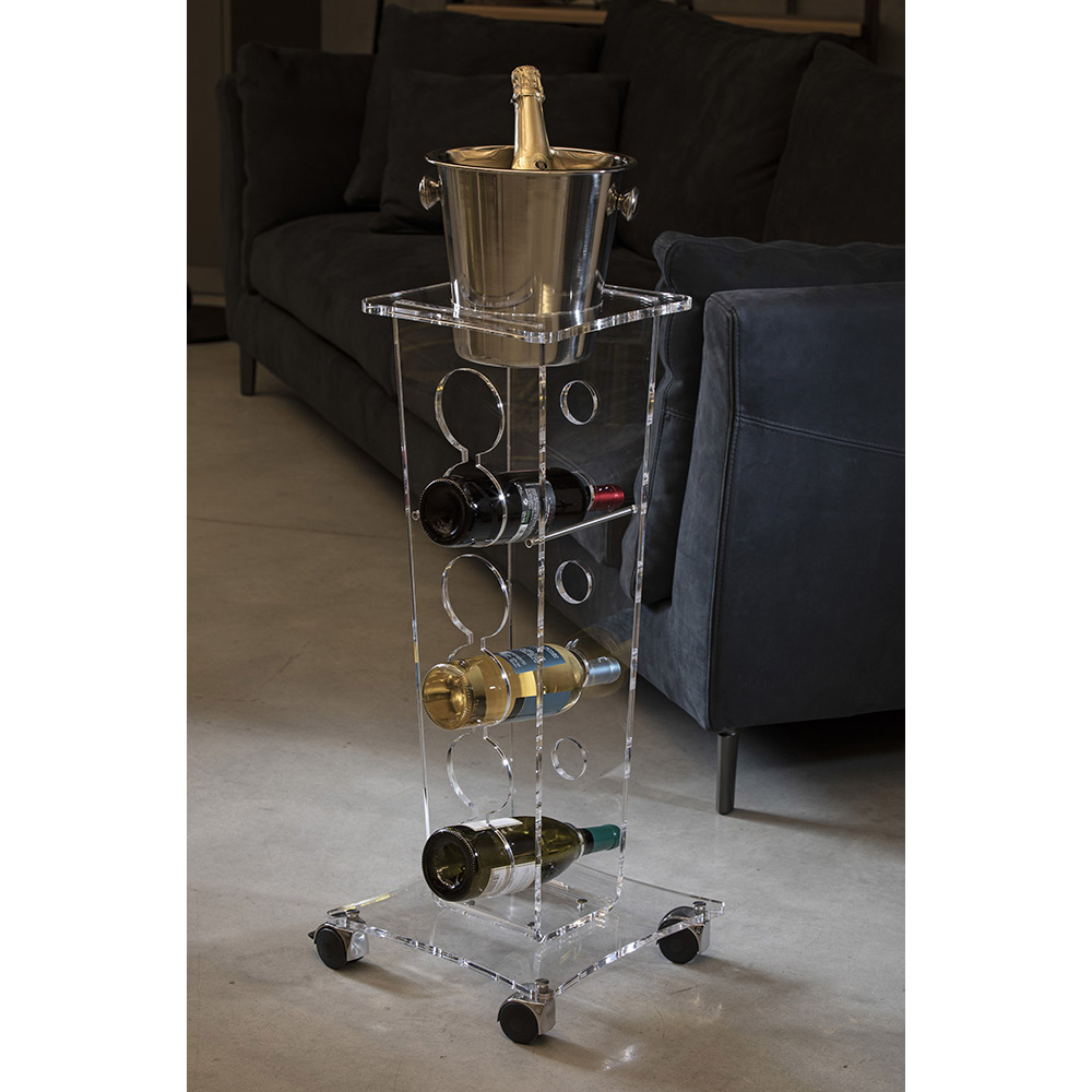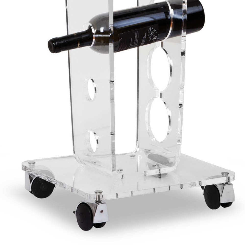 Il portabottiglie da vino freestanding si caratterizza per il design elegante su ruote realizzato interamente in cristallo acrilico trasparente.