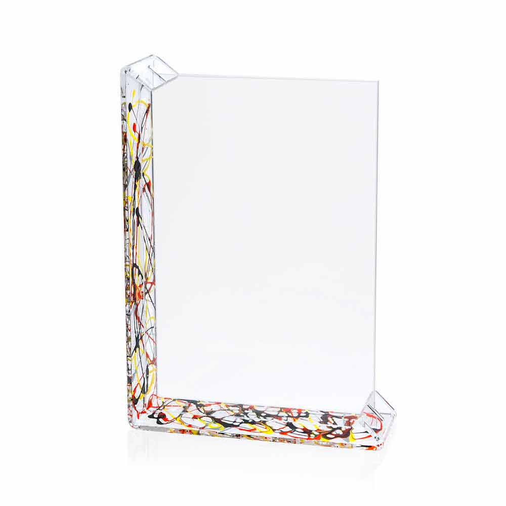 2 Portafoto da tavolo multiplo in plexiglass colorato o con legno, design moderno a laser made in Italy.