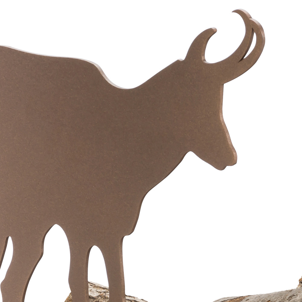 Portalegna di design moderno da terra in acciaio marrone con decoro a forma di stambecco con accessori, made in Italy.