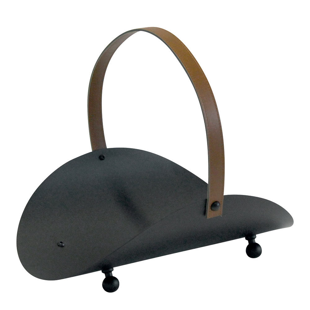 Questo portalegna da camino è un oggetto di design funzionale che incarna l'eleganza nella sua forma più pura. Realizzato con un corpo in metallo robusto e rifinito in una classica tonalità nera, è impreziosito da un manico in pelle che aggiunge un tocco di sofisticazione rustica.