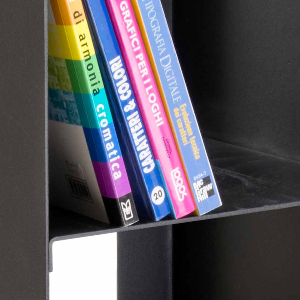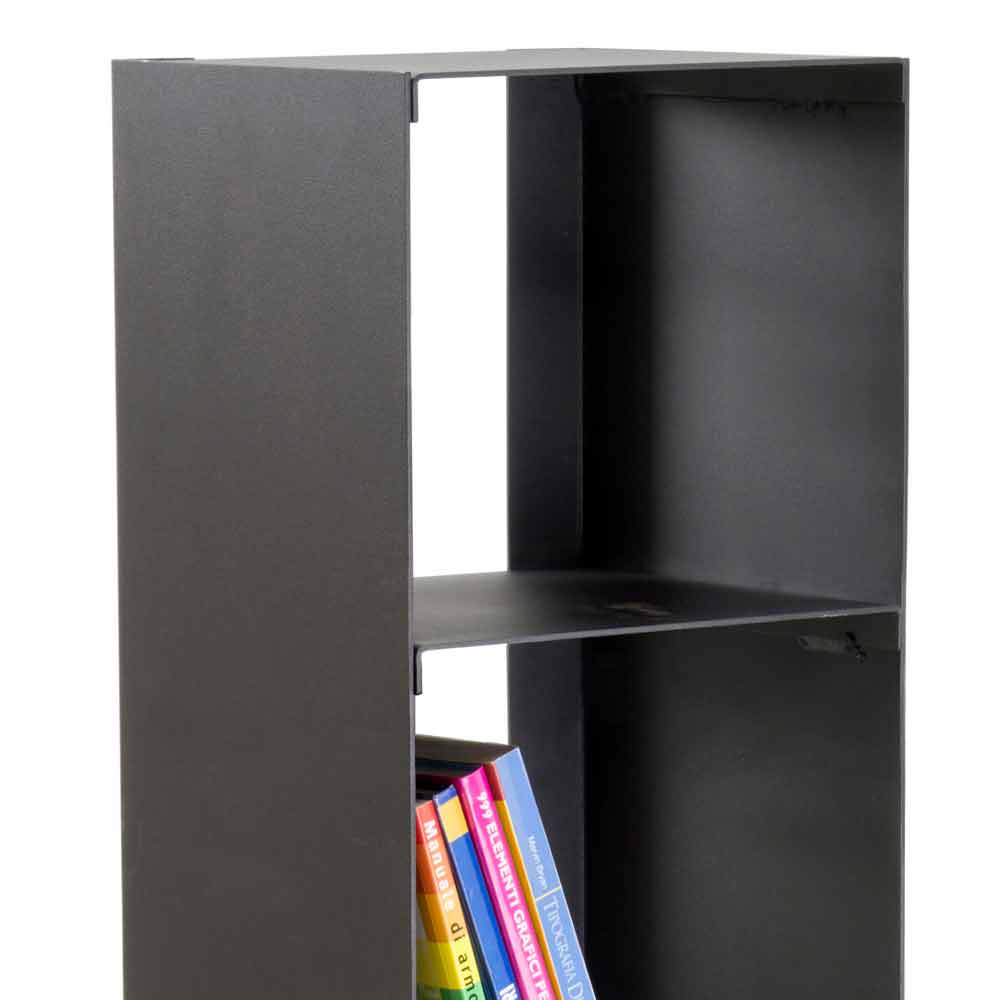 Portalegna da interno a colonna in acciaio nero con mensole, design moderno made in Italy.