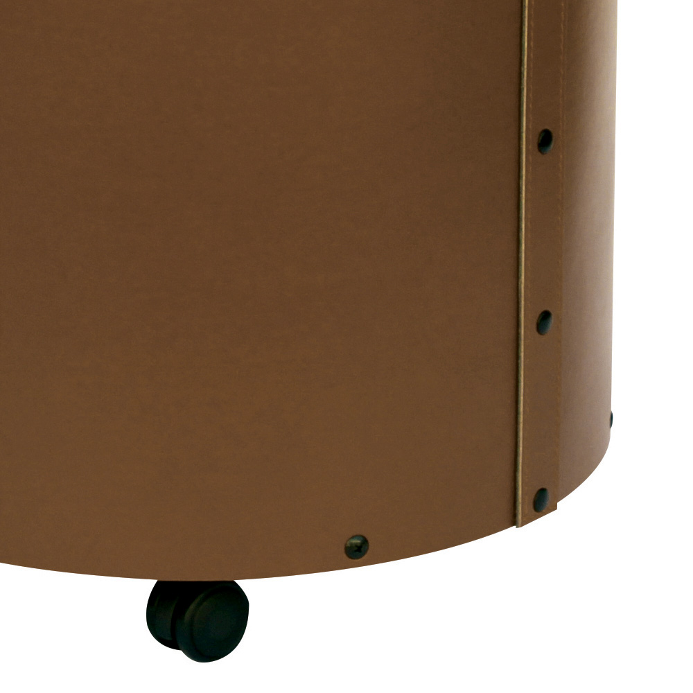 Il design cilindrico è ottimizzato per contenere una quantità generosa di legna, mantenendola accessibile e ordinata. La maniglia superiore assicura una facile movimentazione, mentre le ruote sul fondo permettono di spostare il portalegna con facilità, anche quando è pieno. Questa combinazione di mobilità e funzionalità rende il portalegna un accessorio indispensabile per chi ama riscaldare la propria casa con un camino.