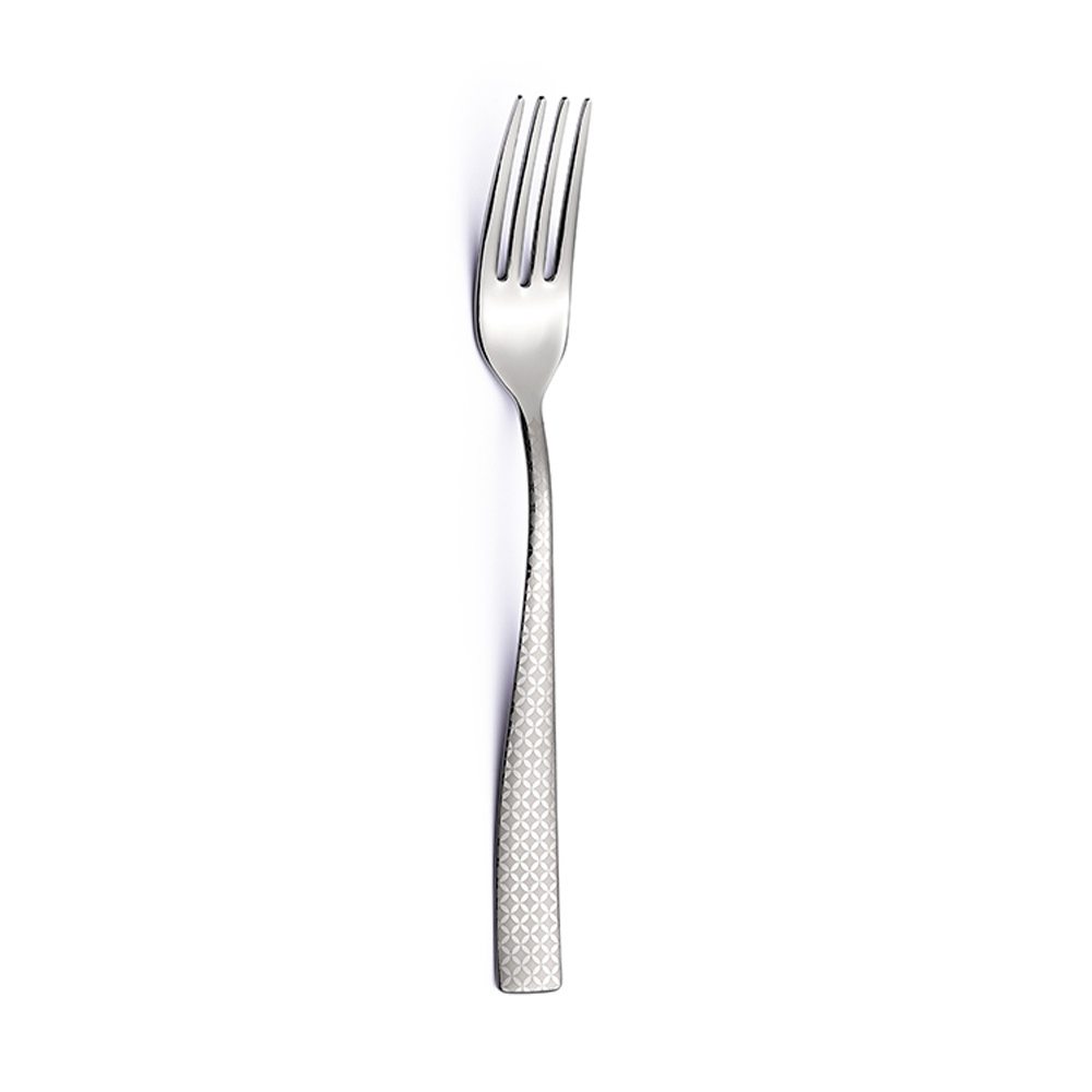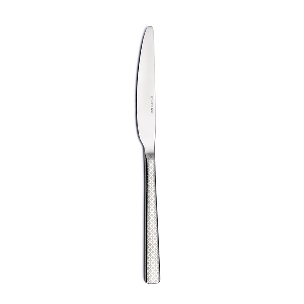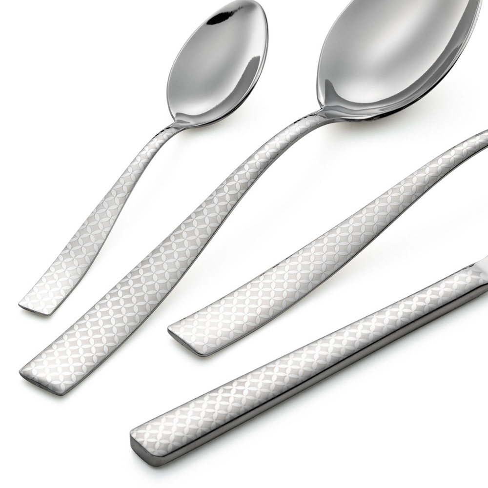 Servizio posate in acciaio inox di design minimale con decoro geometrico a laser, 24 pezzi made in Italy.