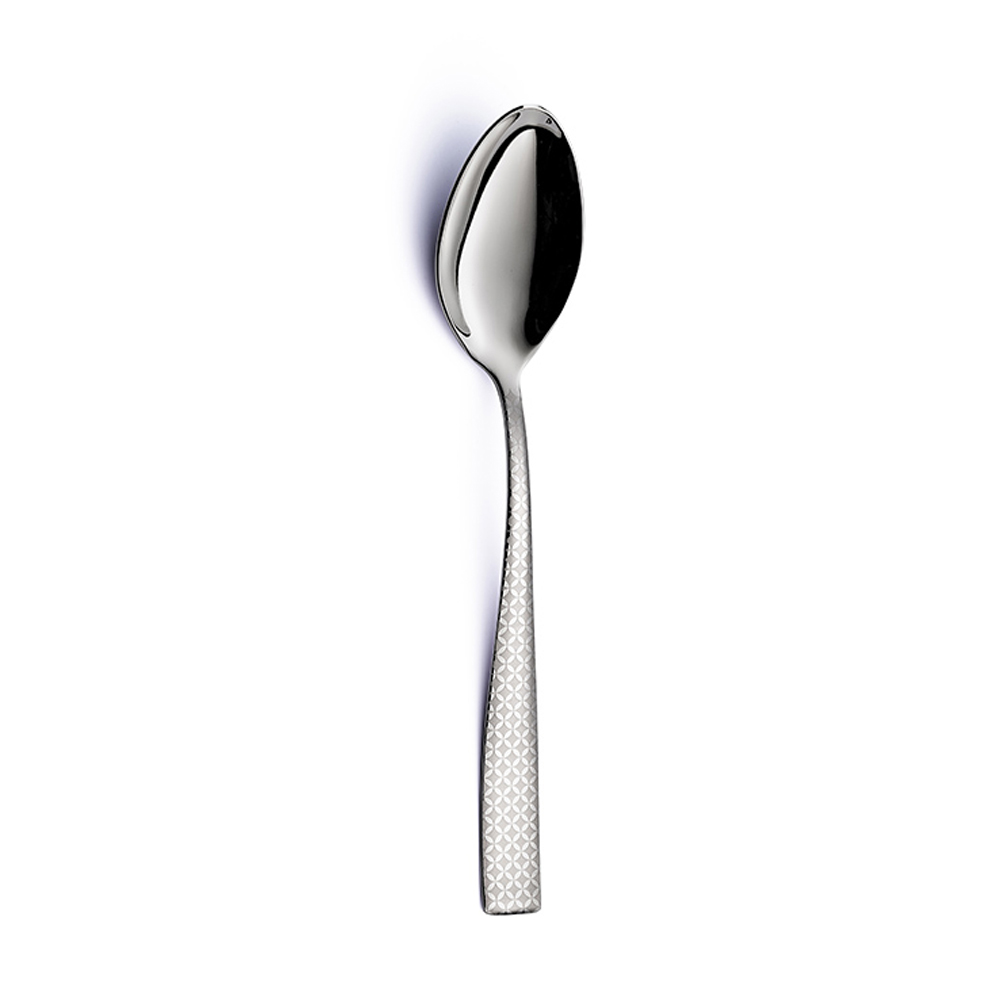 design minimale delle larghe manicature, la forma sagomata e allungata della coppa dei cucchiai e la sobrietà della forchetta evocano un'idea di purezza e di infinito.