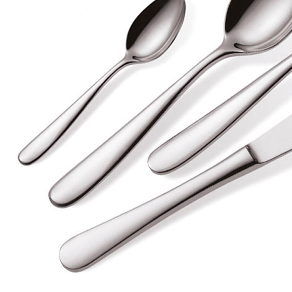 Servizio completo di posate in acciaio inox lucido design moderno minimale, 24 pezzi made in Italy.
