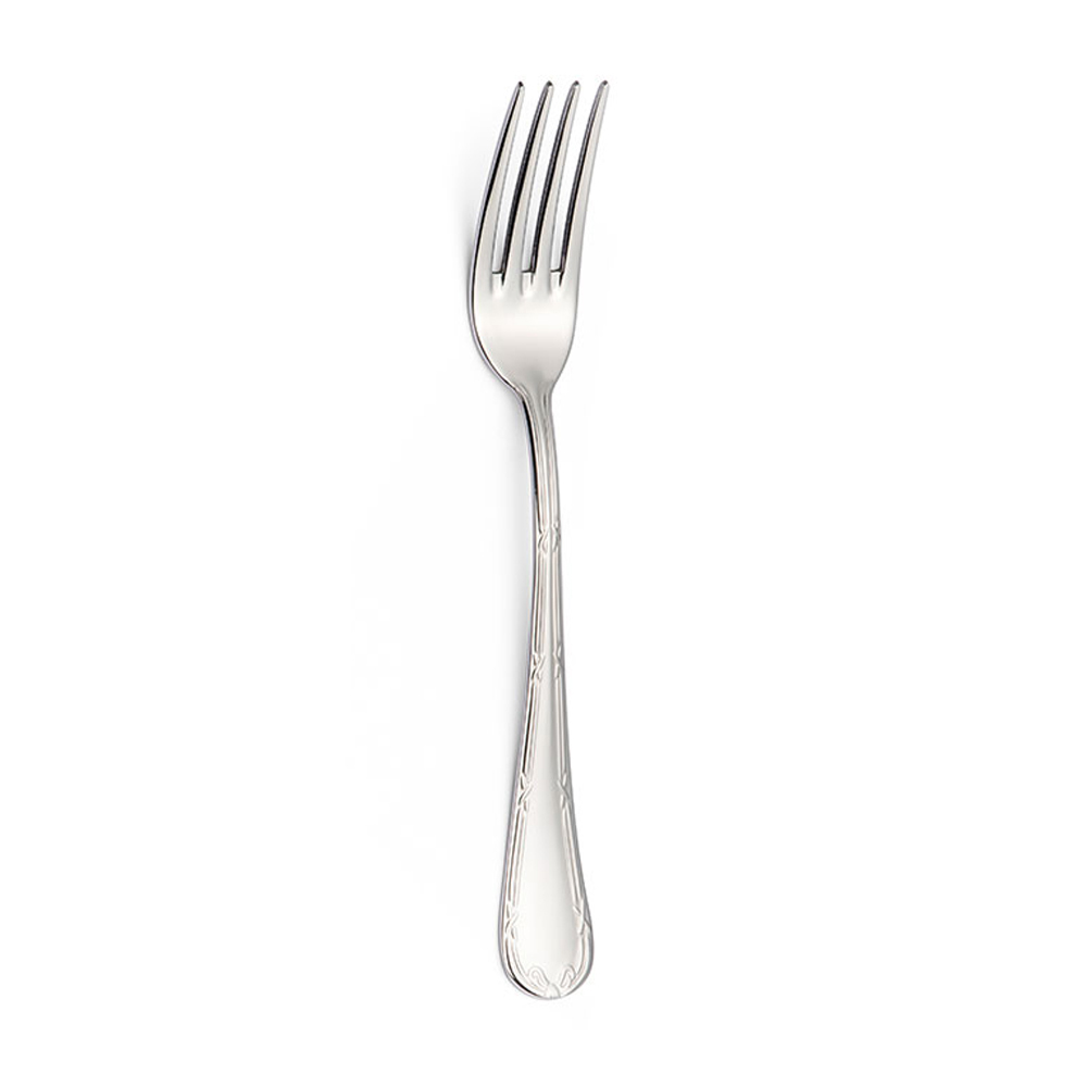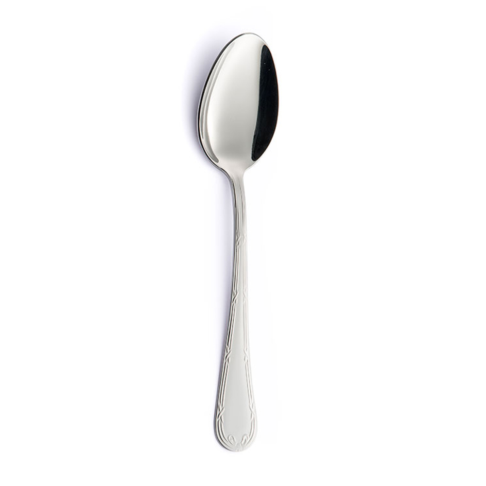 impugnatura arrotondata e dai tratti morbidi. È un modello di posate che si adatta ad ogni tipologia di tavola, particolarmente indicato per arredare un'