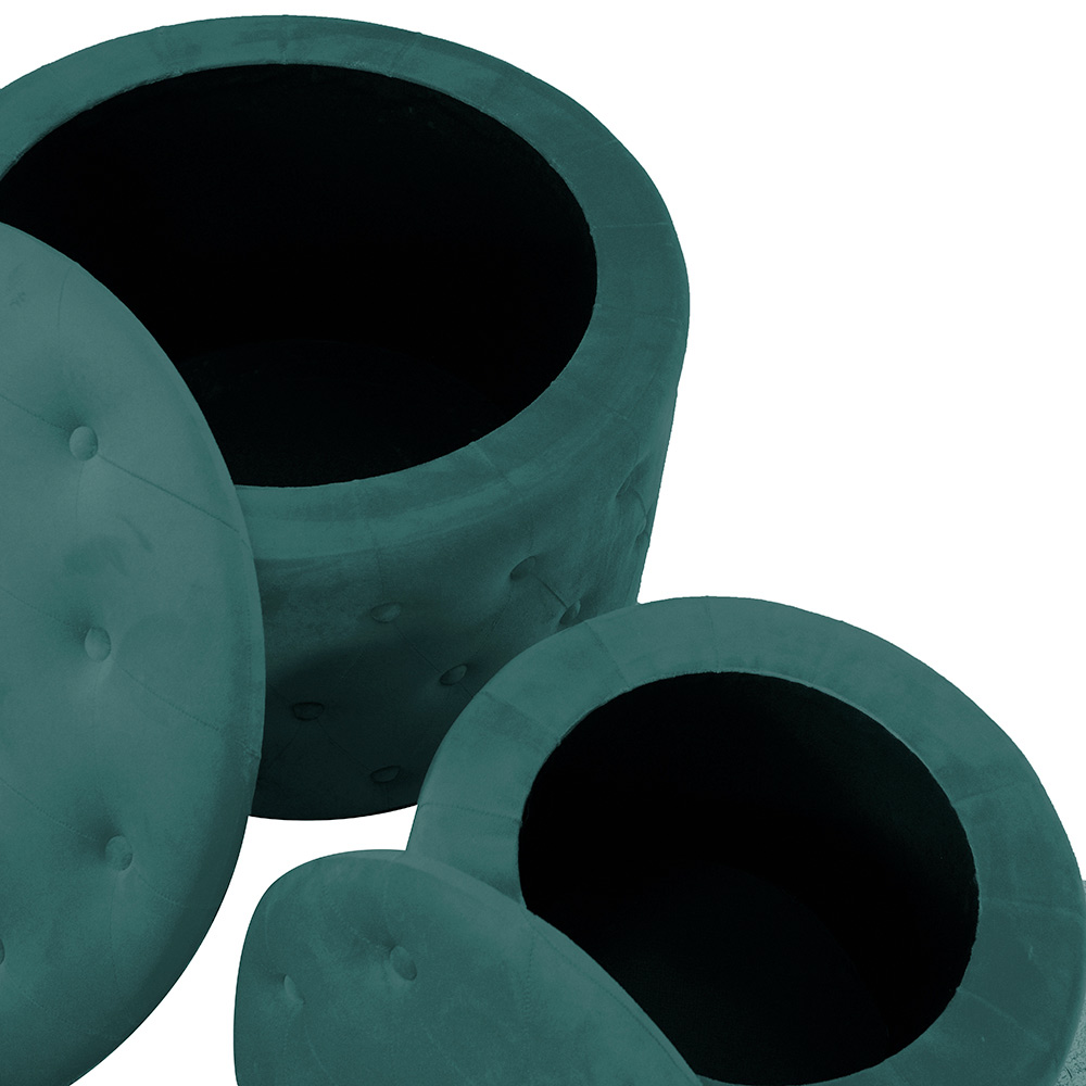 Questo set di pouf con contenitore è il complemento perfetto per unire eleganza e funzionalità in qualsiasi ambiente della casa. Rivestiti in un sofisticato velluto, questi pouf si distinguono per il loro design capitoné con bottoni, che aggiunge un tocco di classe e raffinatezza al tuo soggiorno, camera da letto o ingresso.