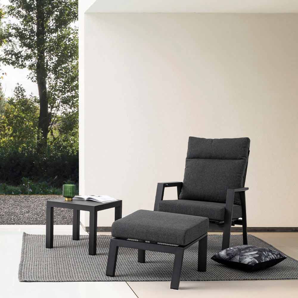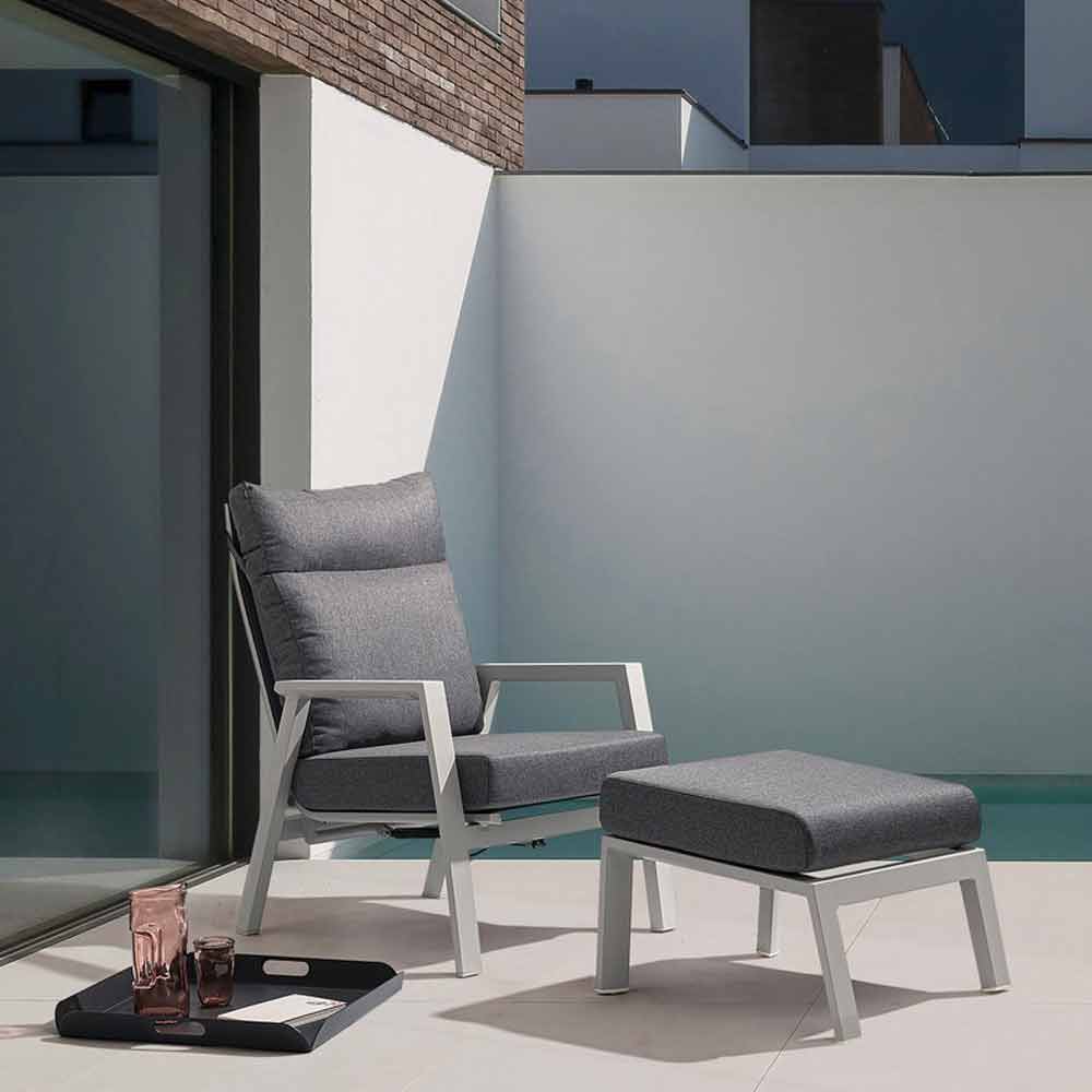 Pouf poggiapiedi in alluminio verniciato con cuscino sfoderabile.