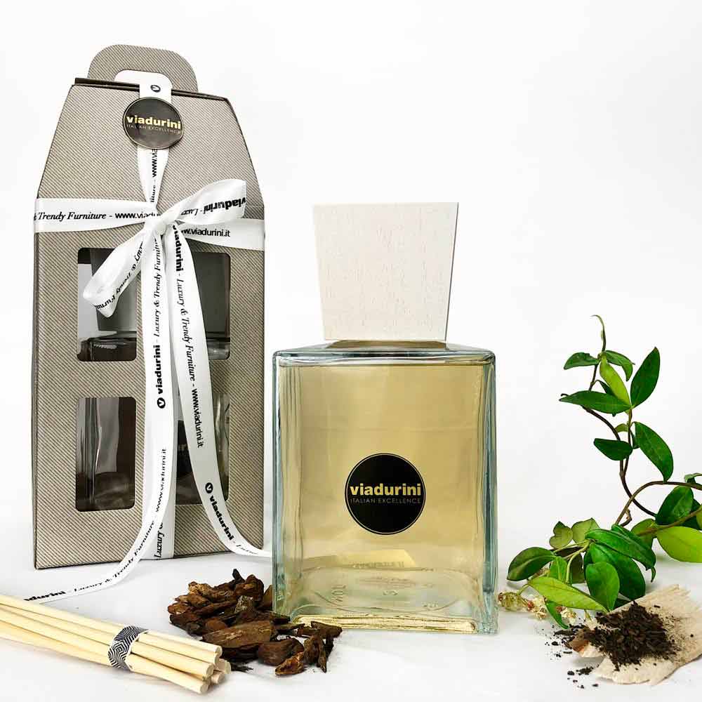 Profumatore d'ambiente speziato al legno di oud con bastoncini - Essenza made in Italy.