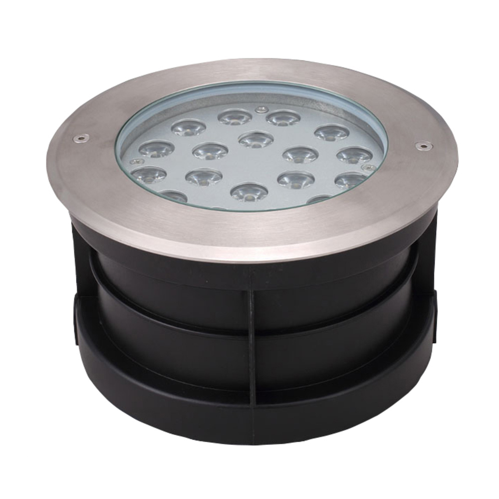Proiettore faretto rotondo a led in acciaio inox da esterno.