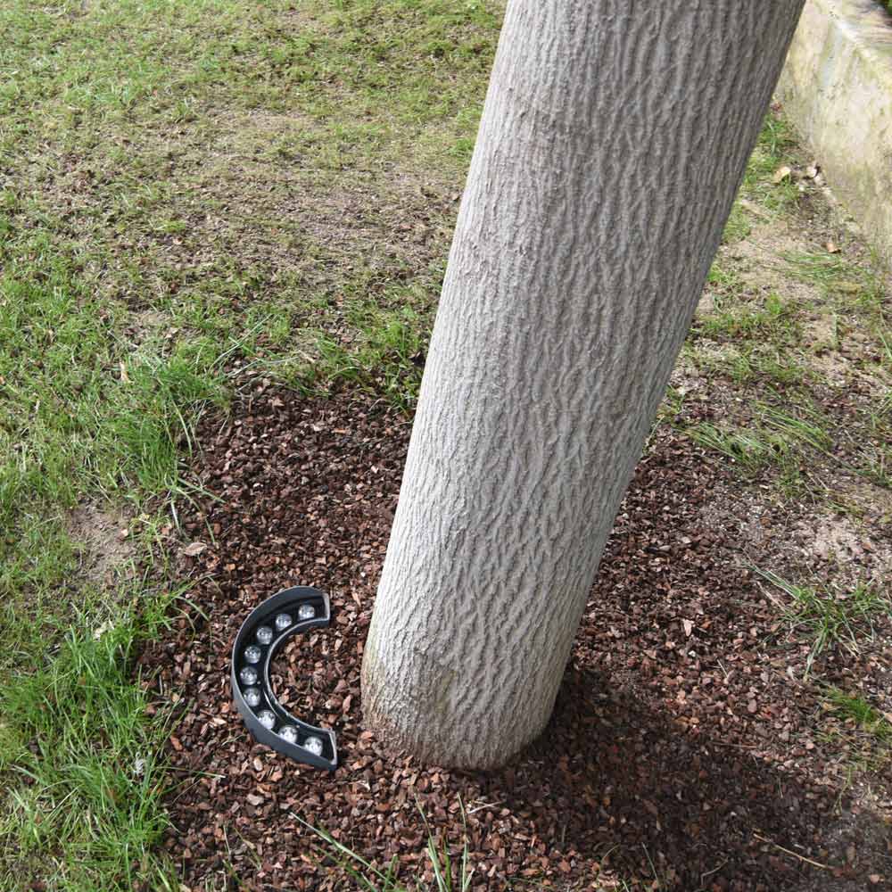 Lampada da esterno con struttura in alluminio nero e acciaio inox completa di LED 9W. Un complemento d'arredo dalla funzionalità esclusiva la cui forma viene pensata per illuminare elementi alti fino a 9 metri come ad esempio alberi posizionati nel proprio giardino di casa o all'interno di ambienti contract all'aperto permettendo di illuminarli dalla base alla chioma per un effetto unico e scenografico.