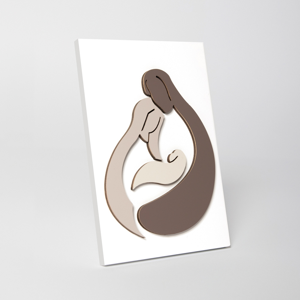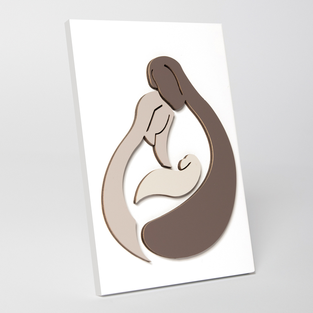 Questo quadro è frutto dell'artigianato italiano, le figure sono disegnate a mano per poi essere dipinte con la luce del raggio laser, senza alcuno spreco e nel rispetto dell'ambiente. Per questo elemento si è scelto appositamente uno stile minimal ed essenziale per esaltare e rappresentare unicamente l'avvento di Gesù. L'unione di finiture e colori crea un prodotto unico nel suo genere che fa trasparire l'amore e l'affetto della famiglia.