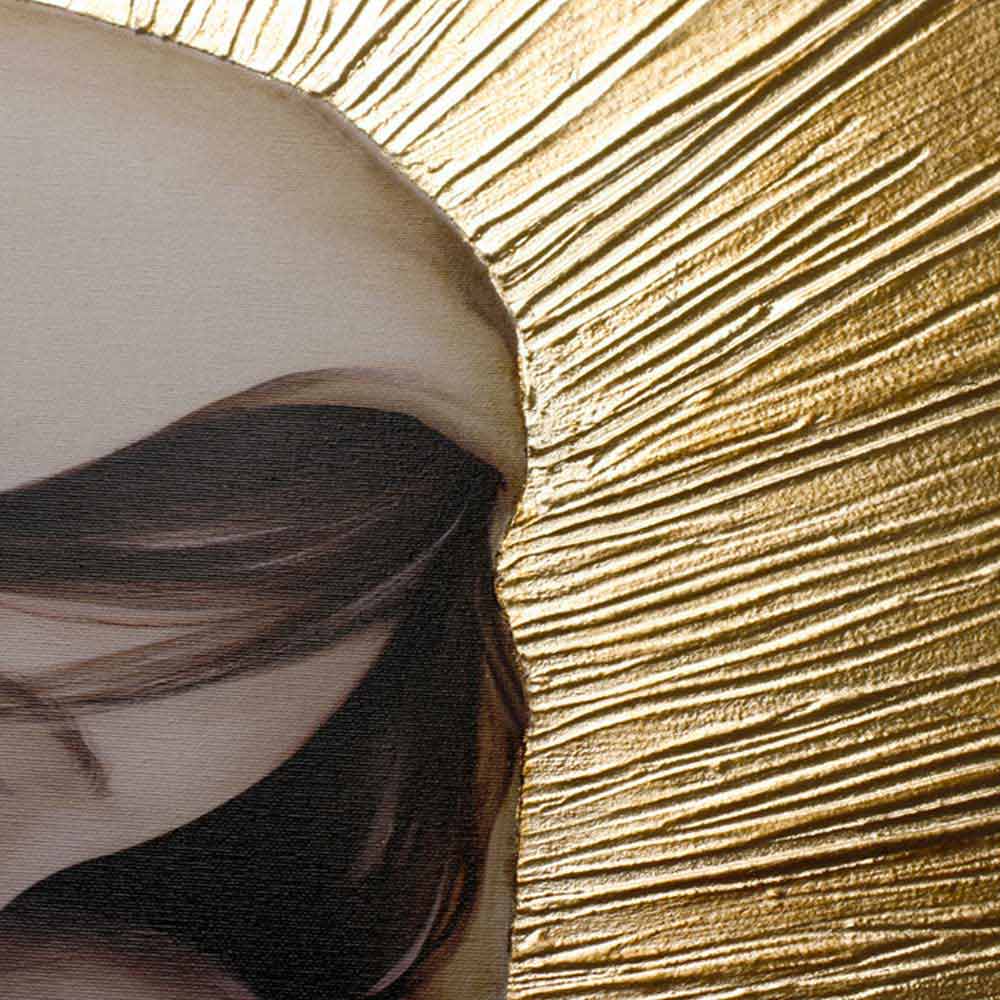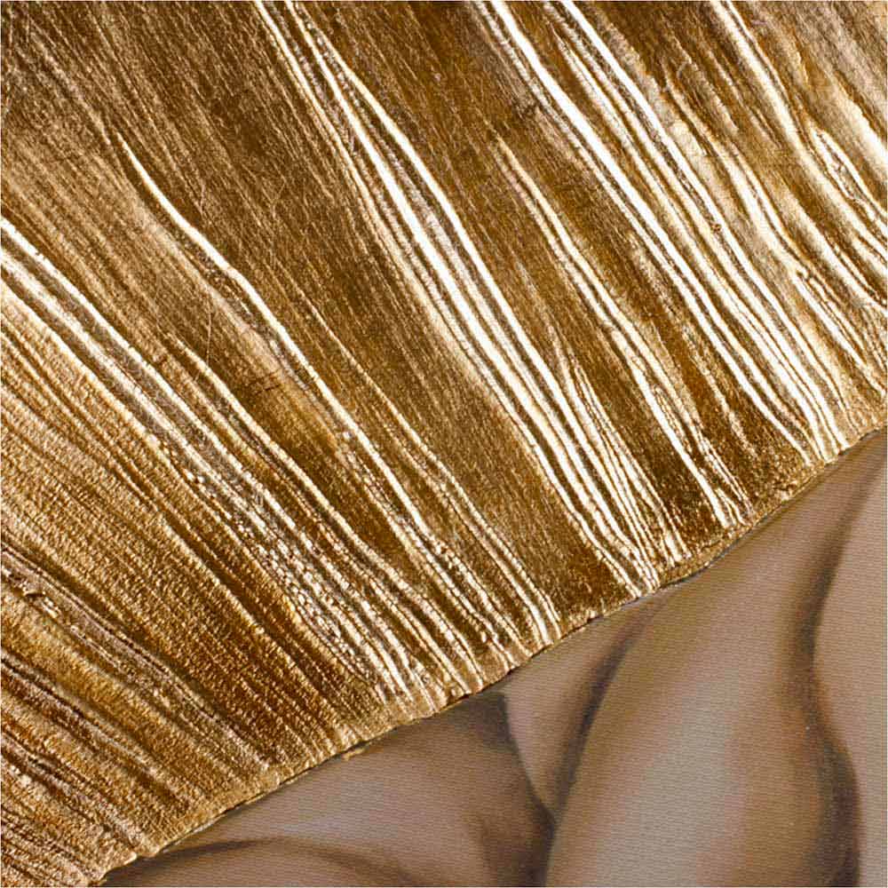 Misure: 100x60cm Decorato a mano con materico in rilievo e foglia oro su struttura telata.