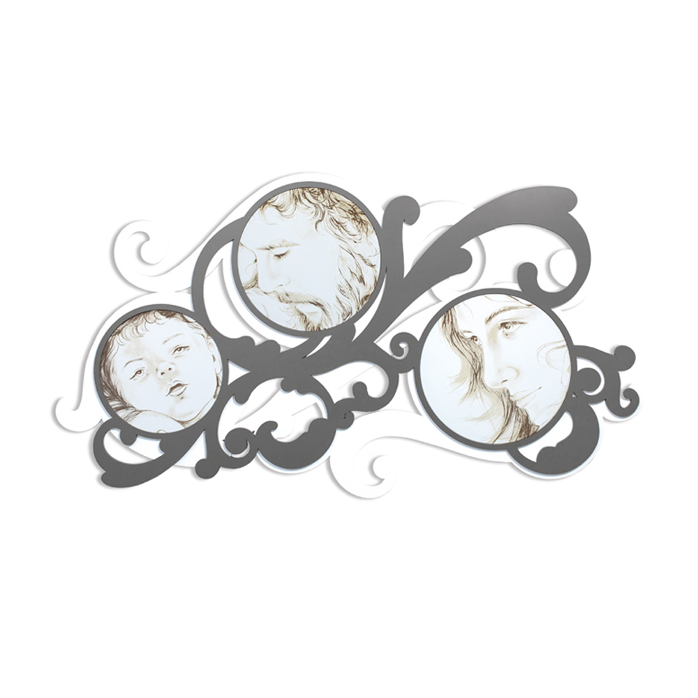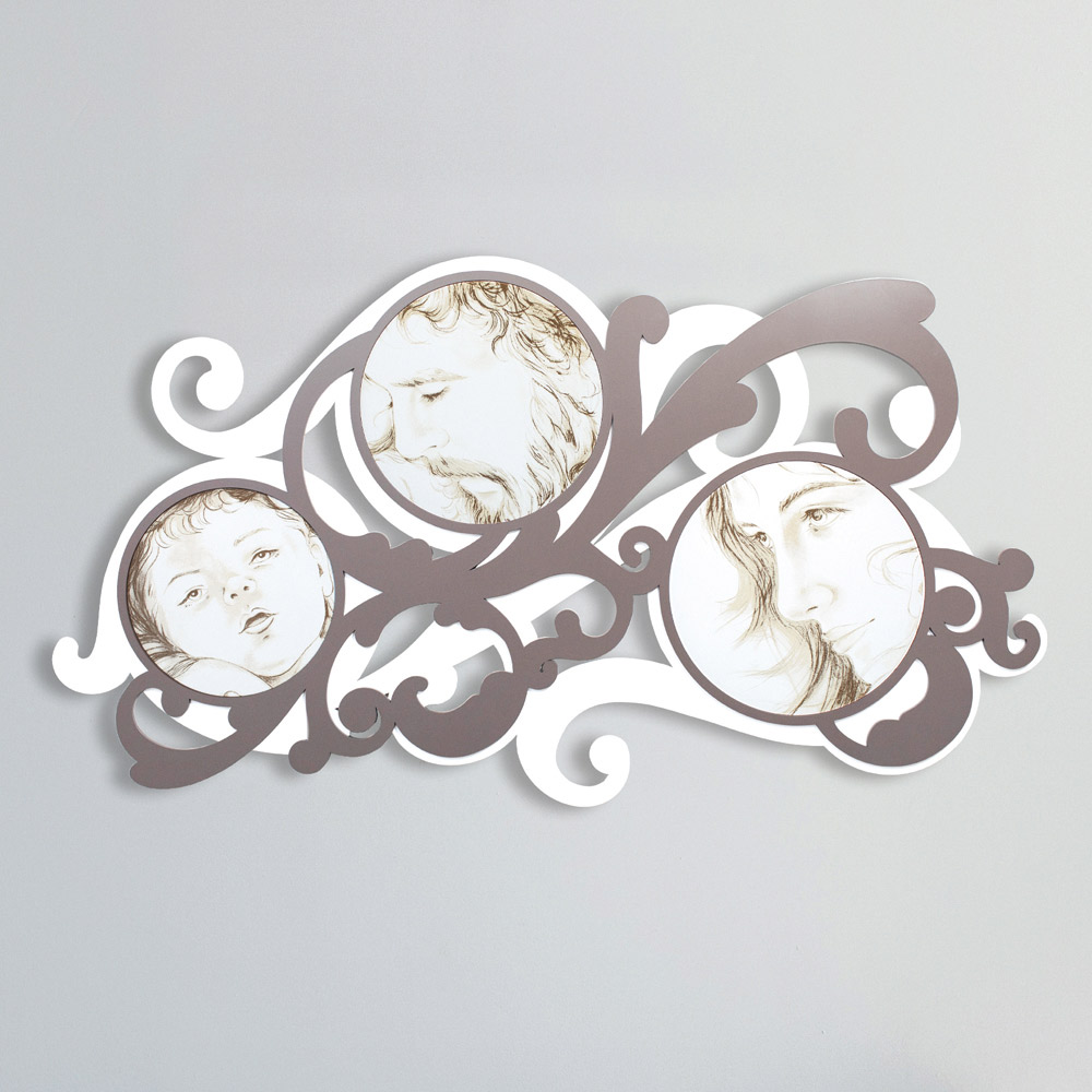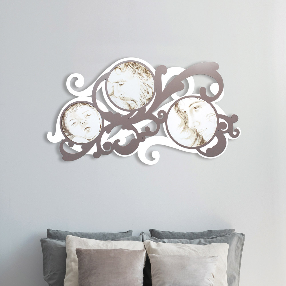 Un capoletto raffigurante la discendenza grazie alla marcatura laser, che mostra i lineamenti dei visi.Pannello in legno laccato bianco opaco con marcatura laser, una speciale tecnica che crea un bassorilievo sui materiali. Il disegno originale fatto a mano unito alla tecnologia del laser dà vita a quest'opera incisa su più livelli.