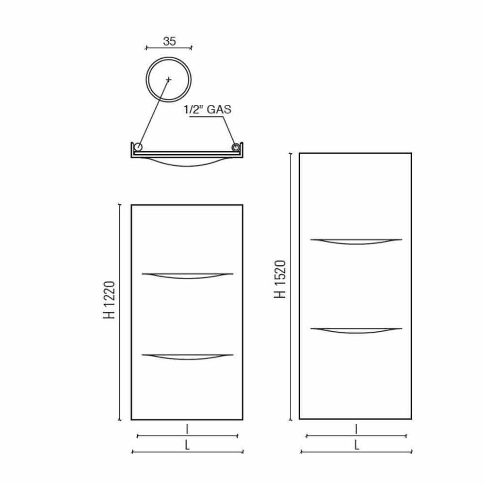 - H 1520 x L 635 x Inter.560 x P 63 mm x Resa w(Δt50*) 720; Resa w(Δt30*) 379; Resa w(Δt26*) 317
