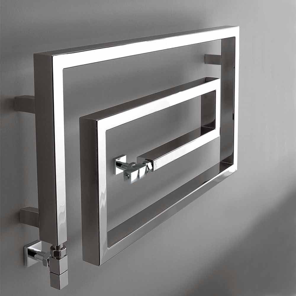 Termoarredo in acciaio cromo, nella versione idraulica. Una collezione dal segno grafico deciso. Forma, materia, funzione e tecnologia creano non più semplici scaldasalviette ma veri e propri elementi d’arredo.