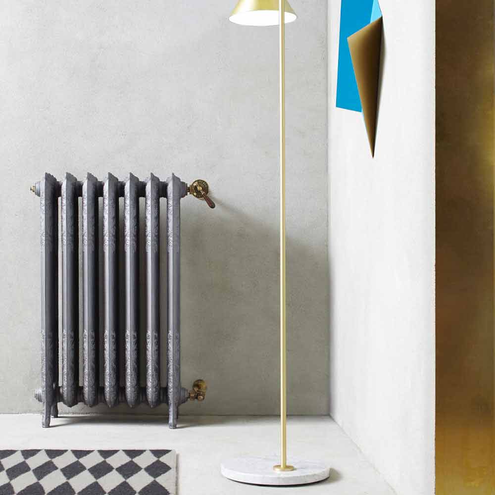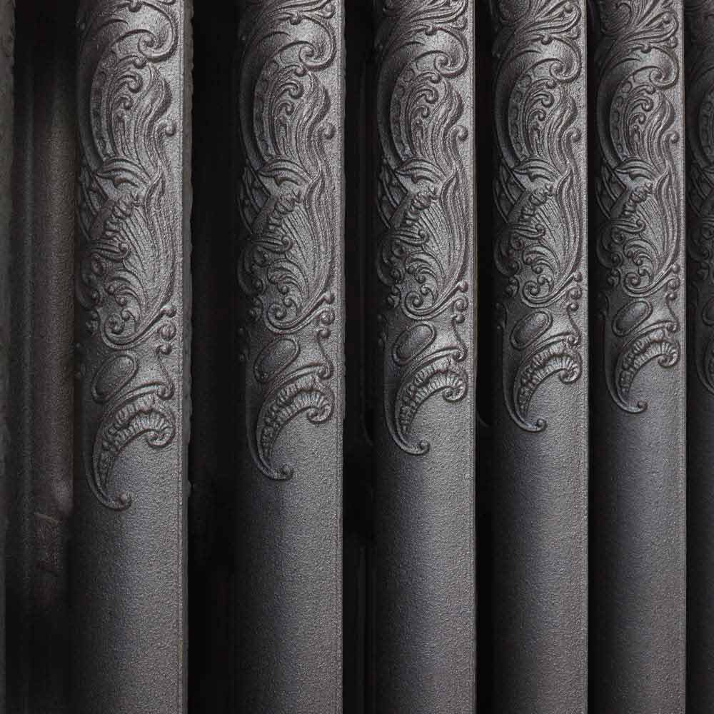 Questo radiatore idraulico presenta un design dallo stile barocco per via dei suoi meravigliosi decori sulle colonne, disponibili eventualmente anche lisce, ed è interamente realizzato in ghisa, per un colore grigio naturale.
