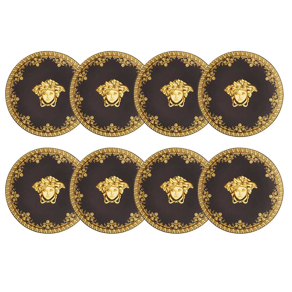 Il piatto I Love Baroque di Versace, realizzato in pregiata porcellana, è l'essenza della raffinatezza e del lusso senza tempo. Il design sofisticato presenta un fondo nero intenso, arricchito da un bordo decorato con motivi barocchi dorati che incarnano la tradizione artistica della maison. Al centro, troneggia l'iconico volto della Medusa, simbolo di potere e fascino eterno, che conferisce un carattere regale e distintivo a questo capolavoro.