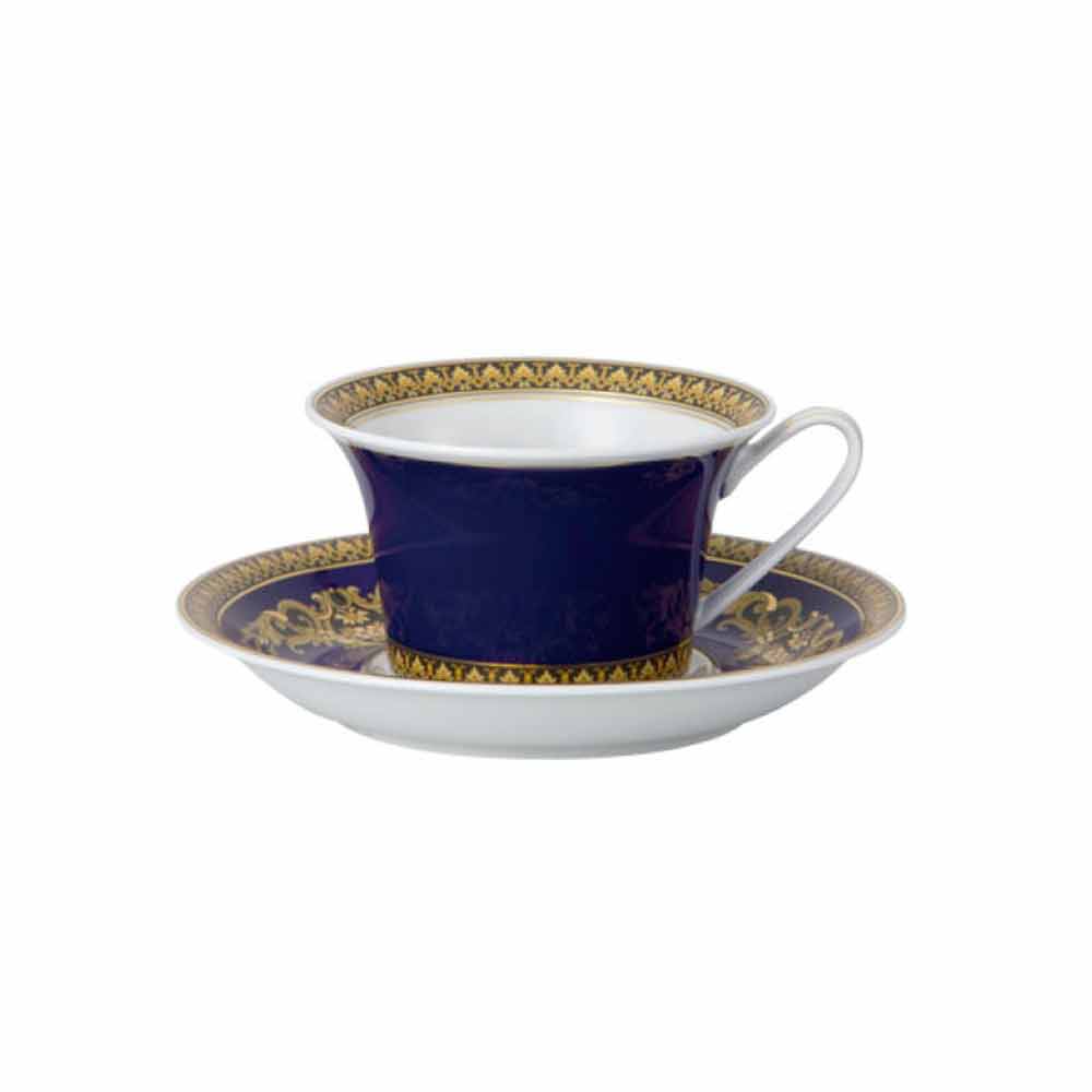 La stilosissima tazzina da tè compresa di piattino firmata Versace, fà parte dell'elegante collezione moderna che abbinata a un glamour affascinante e raffinato richiama epoche passate, si esprime nella tonalità di blu acceso e prende il nome di Medusa Blue.