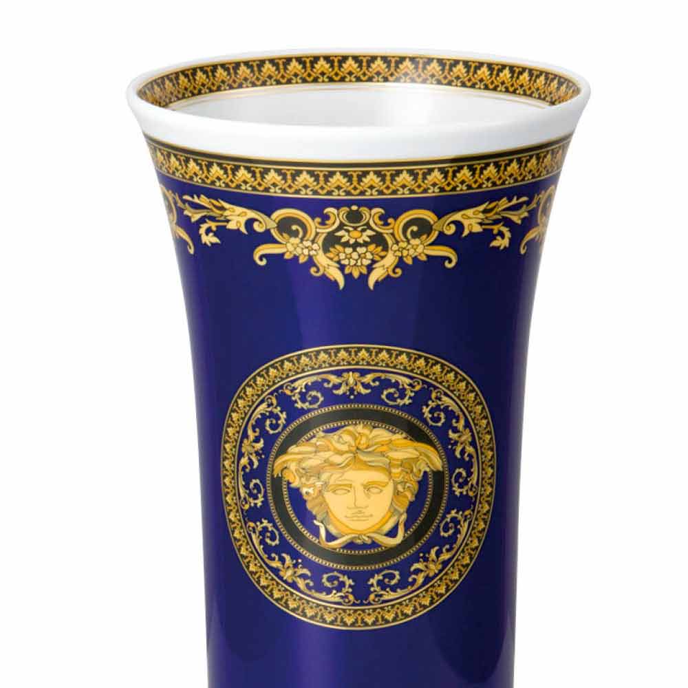 Il favoloso vaso 26cm di design firmato Versace, fà parte dell'elegante collezione moderna che abbinata a un glamour affascinante e raffinato richiama epoche passate, si esprime nella tonalità di blu acceso e prende il nome di Medusa Blue.