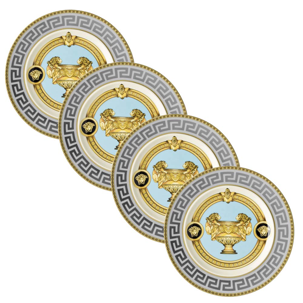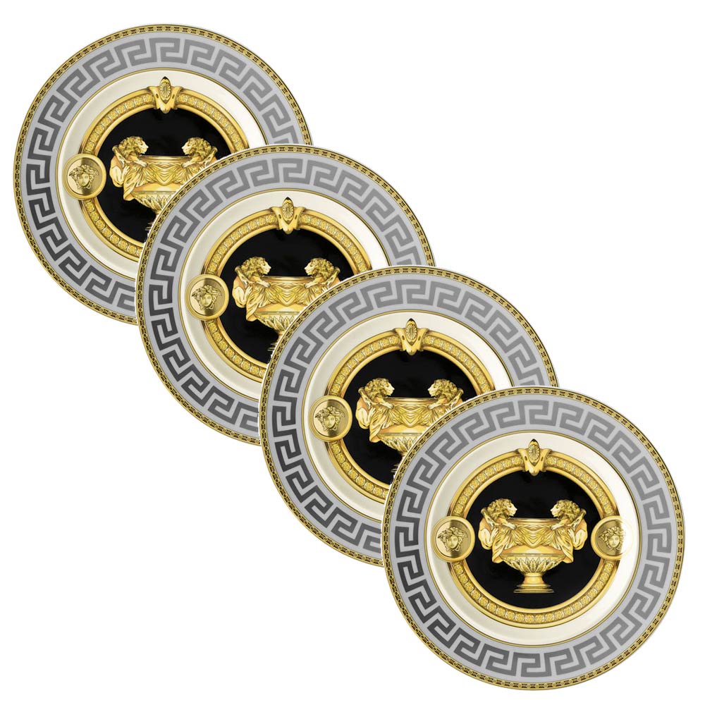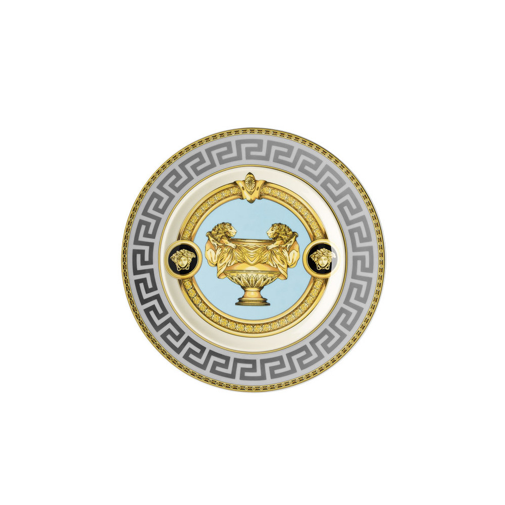 Il piatto per il pane Prestige Gala di Versace, realizzato in raffinata porcellana, è una perfetta rappresentazione del lusso e dell'eleganza senza tempo. Il design sofisticato presenta un decoro centrale con un'anfora dorata, simbolo di regalità e tradizione, incorniciata da un audace motivo greco e dettagli dorati che catturano l'essenza della maison. Disponibile in sfondo nero o azzurro, offre una scelta di stile per ogni occasione.