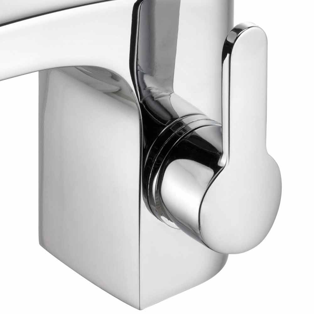 Rubinetto moderno per lavabo da bagno in ottone finitura cromata senza scarico a saltarello.
