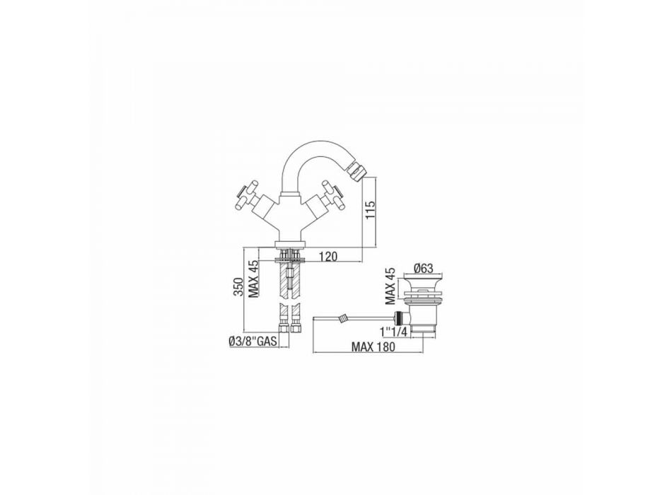 Miscelatore monoforo per bidet Made in Italy in ottone cromato con scarico 1'' 1/4 completo di vitone.