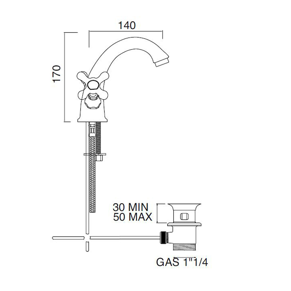 Rubinetto lavabo monoforo con scarico stile classico in ottone, alta qualità made in Italy.