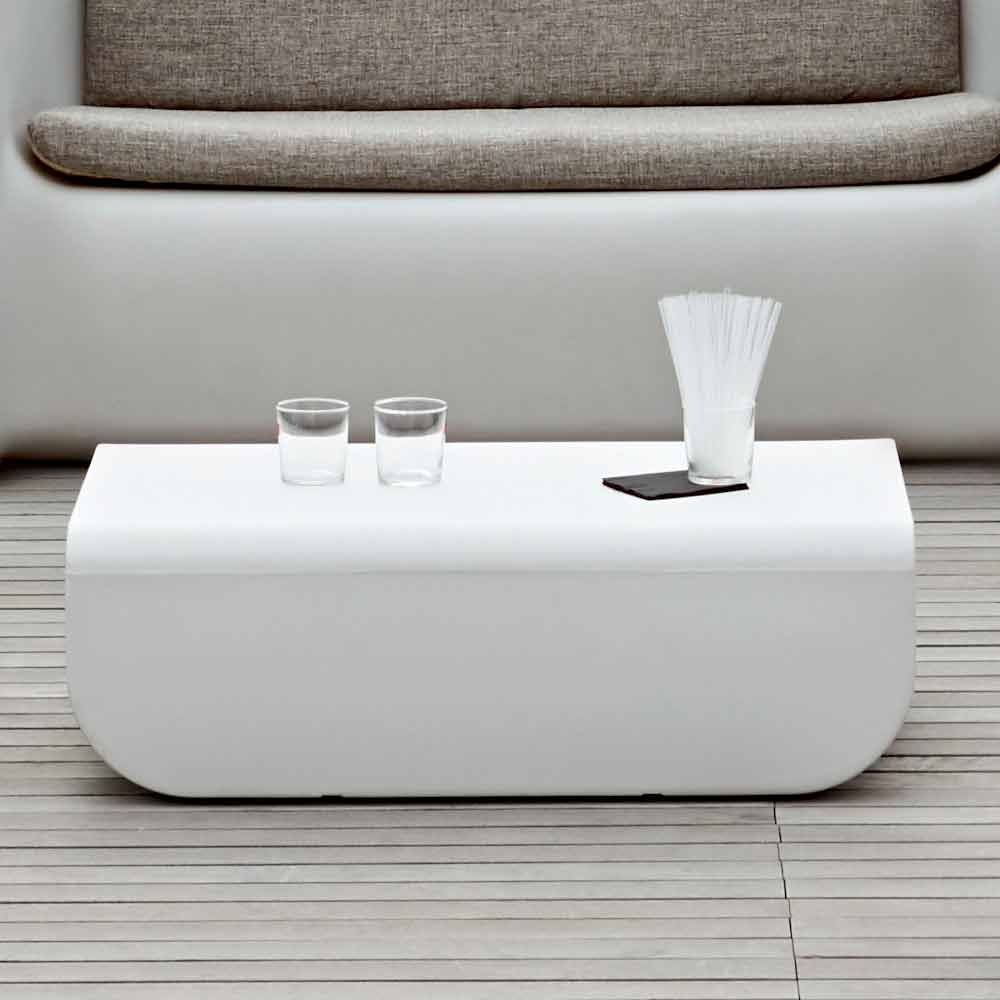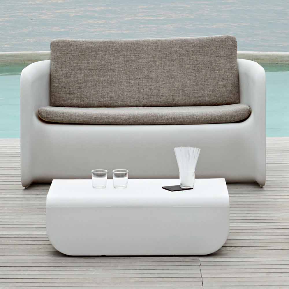 Salotto da giardino di moderno, divano e tavolino di design in polyeasy made in Italy.