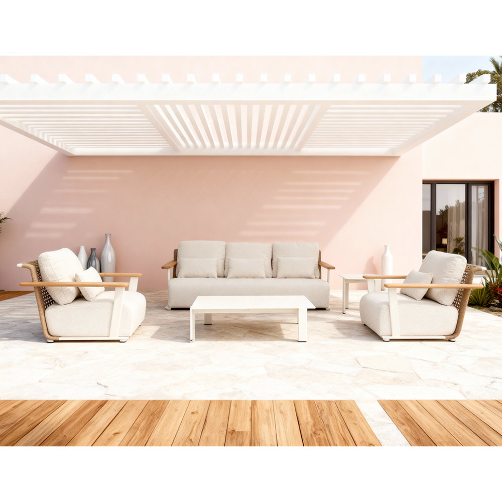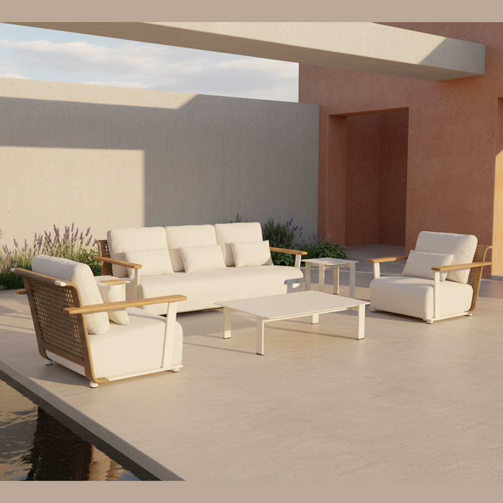 È un salotto progettato per chi vuole vivere gli spazi esterni con stile, qualità e resistenza nel tempo—perfetto per momenti di relax, aperitivi con gli amici o per accogliere gli ospiti con un design che parla da sé.