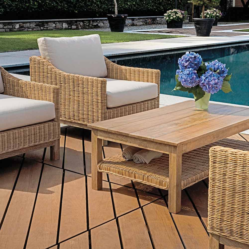 Ideale per chi desidera un salotto da esterno elegante, confortevole e naturale, capace di unire artigianalità, qualità e stile in un’unica soluzione d’arredo.