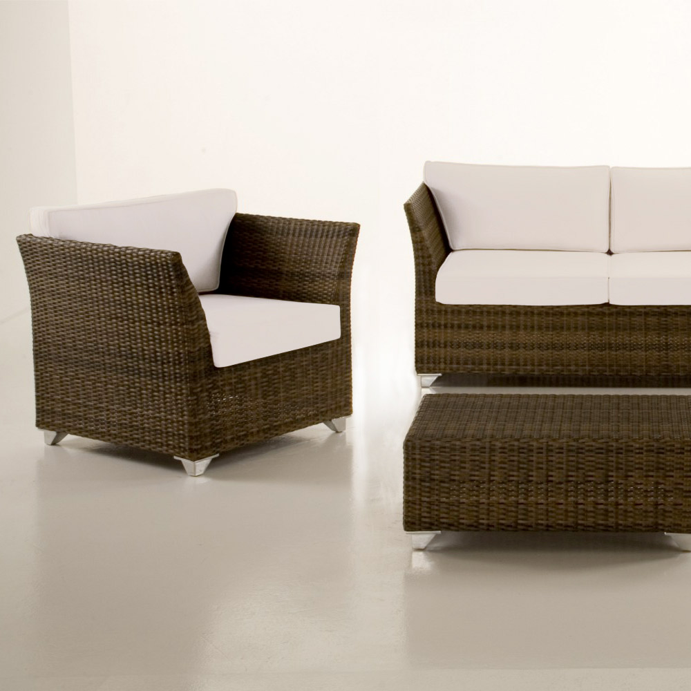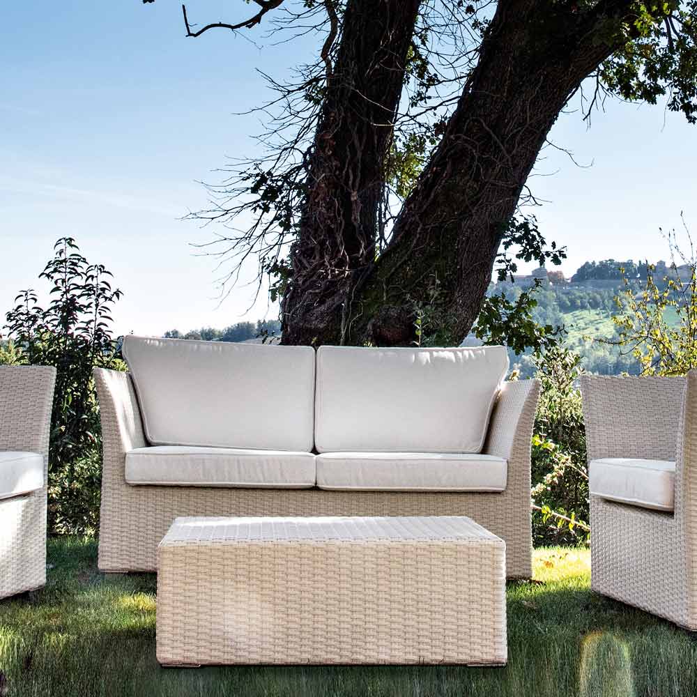 Salotto da giardino in alluminio, intreccio in Polyrattan marca REHAU e cuscini