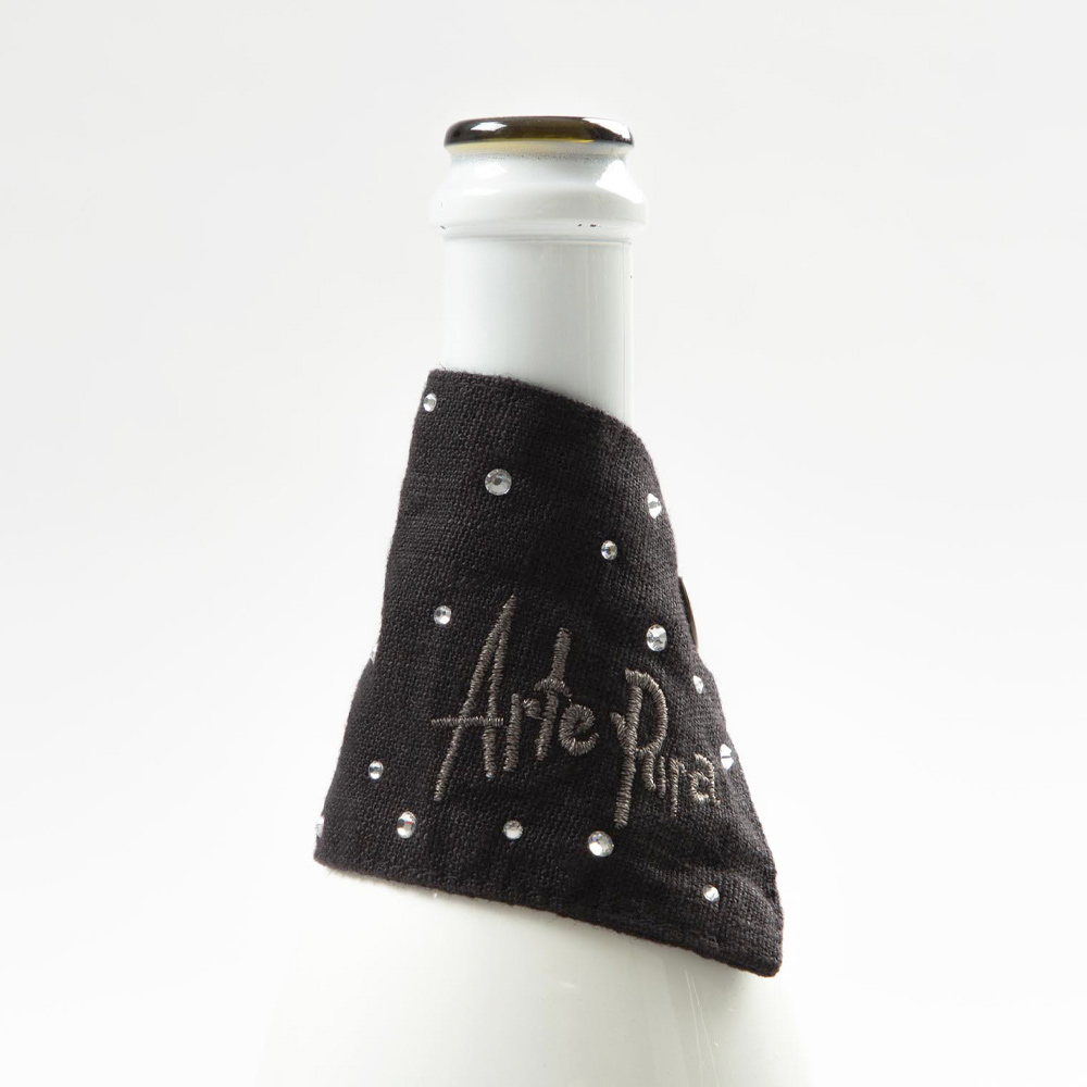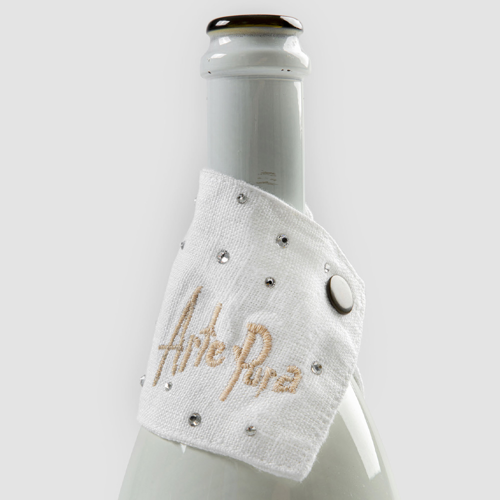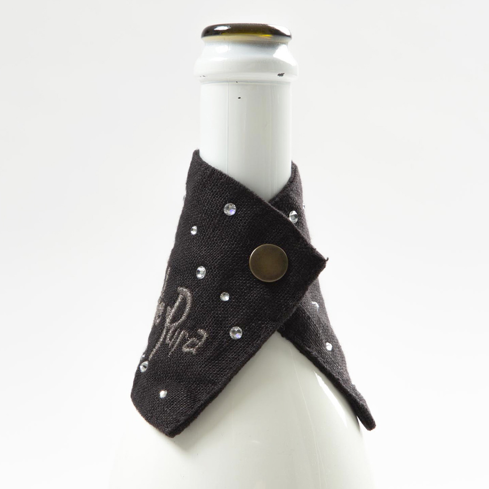 Salvagocce per bottiglie in lino bianco o nero con cristalli di decoro, qualità made in Italy.