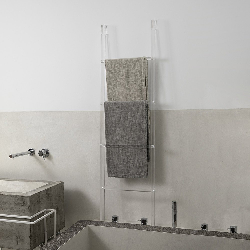 Scaletta portasciugamani da bagno in cristallo acrilico trasparente, 2 misure made in Italy.