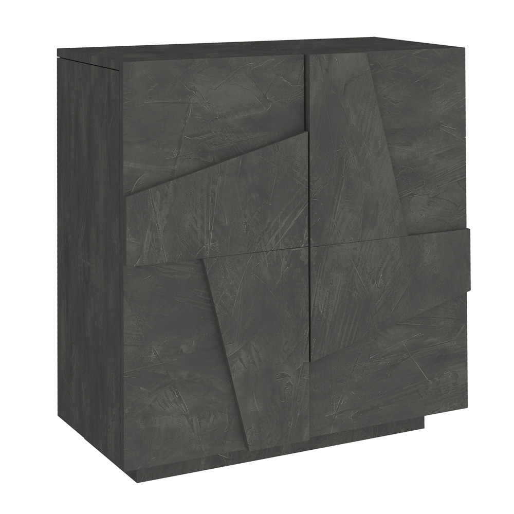 2 ante battenti rese particolari dall’intaglio geometrico in rilievo sulla superficie, a chiusura di