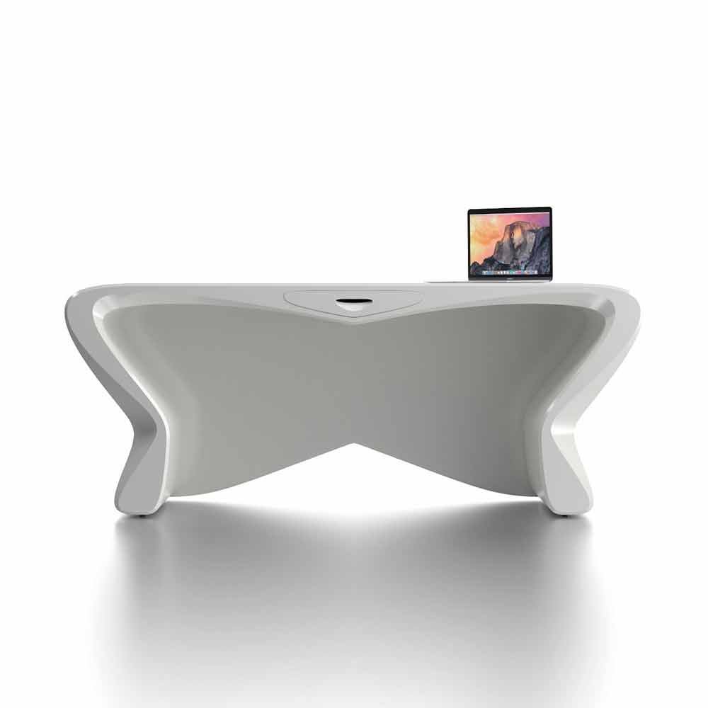 Popoli è una fantastica scrivania da studio realizzata in Solid Surface® e ispirata alle forme di una farfalla.