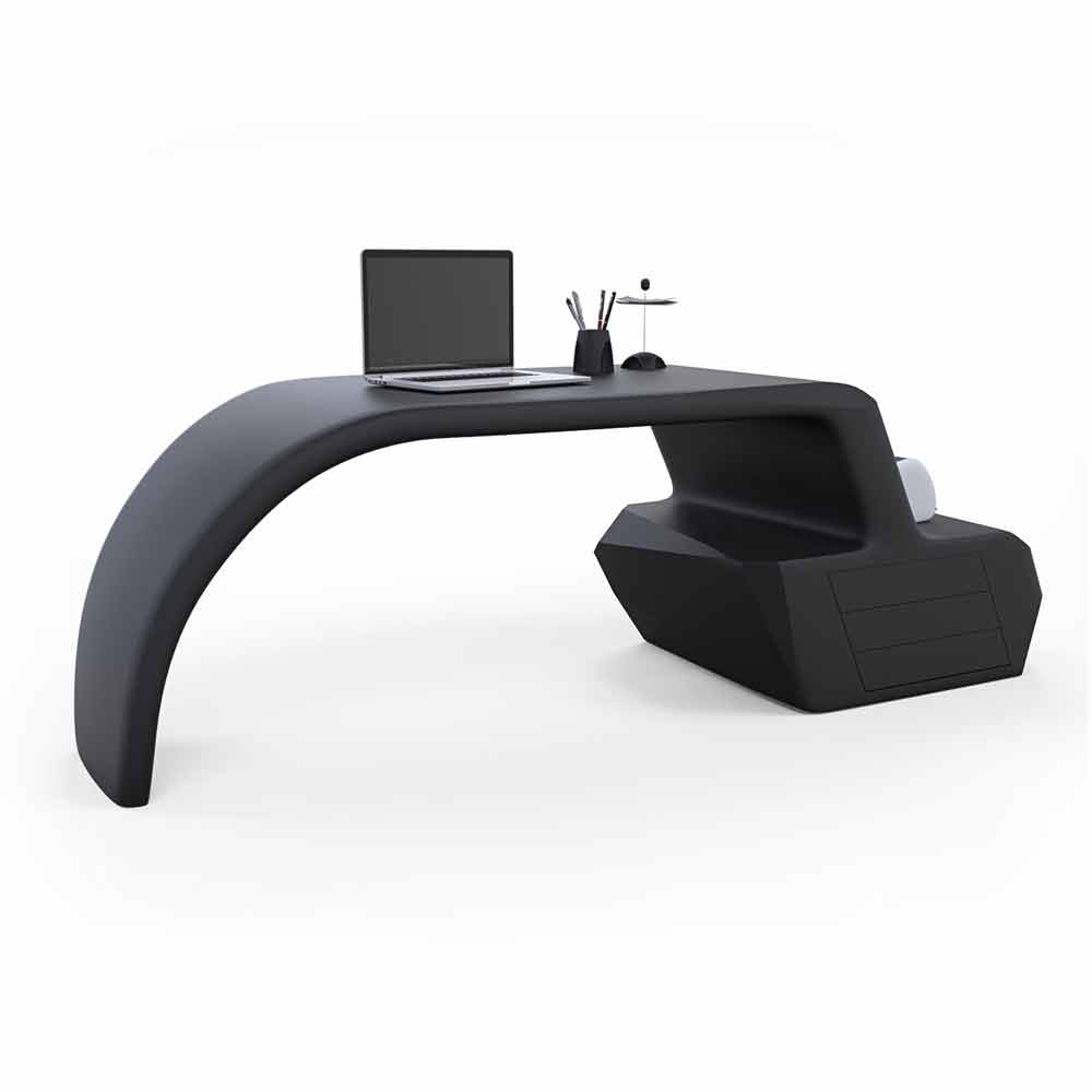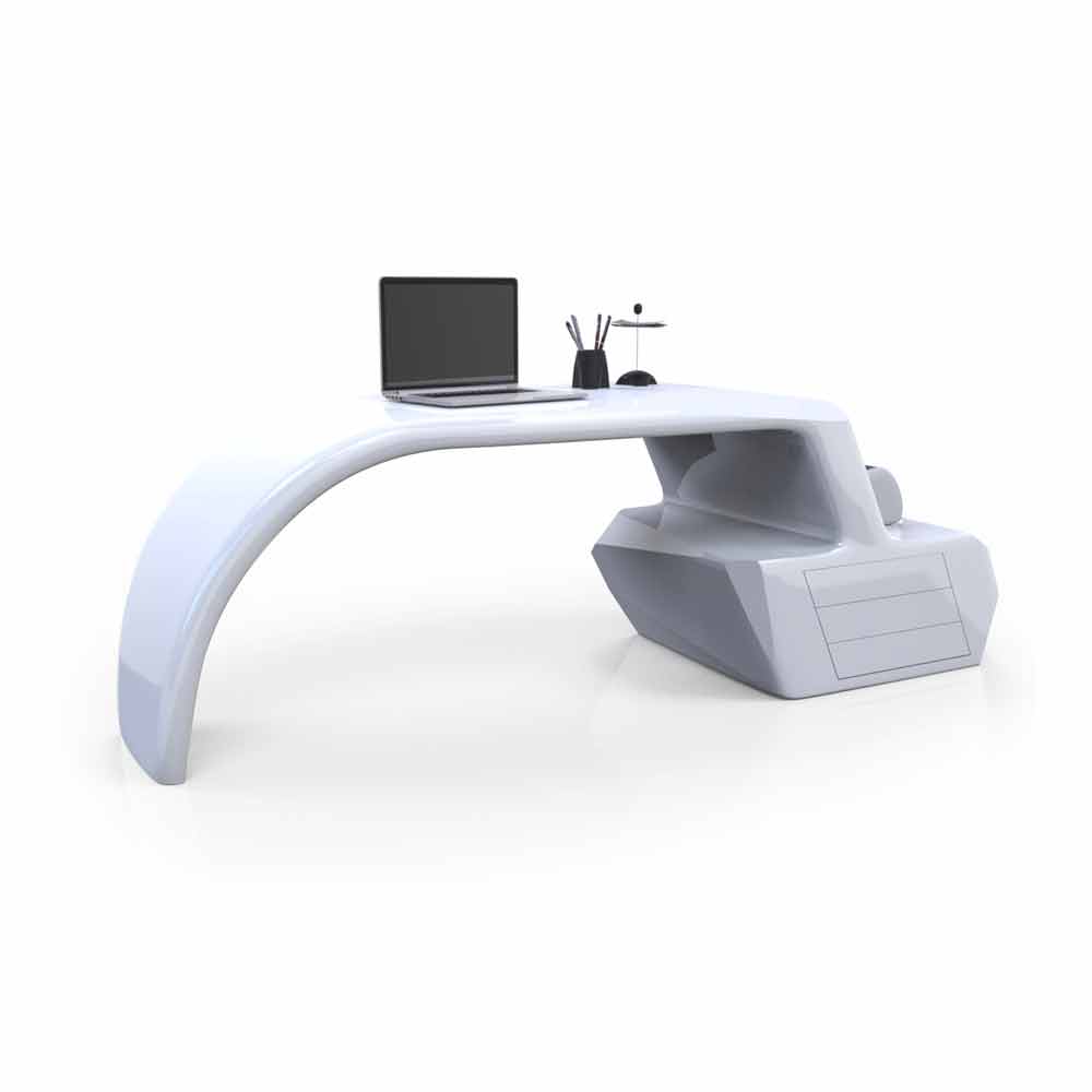 La scrivania Gush nasce dall'incontro tra linguaggi formali apparentemente lontani. Come uno zampillo d'acqua sorgiva scaturisce dalla roccia, così la nostra scrivania mette a dialogo codici stilistici divergenti: solido VS liquido per esaltare appieno le caratteristiche di Solid Surface;, materiale del quale è costituito. Scrivania disponibile in due varianti cromatiche: Bianco (RAL9003) o Nero (RAL9005).
