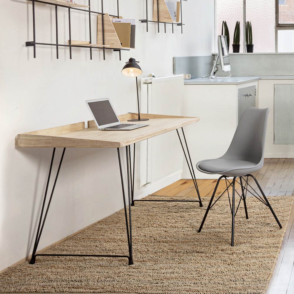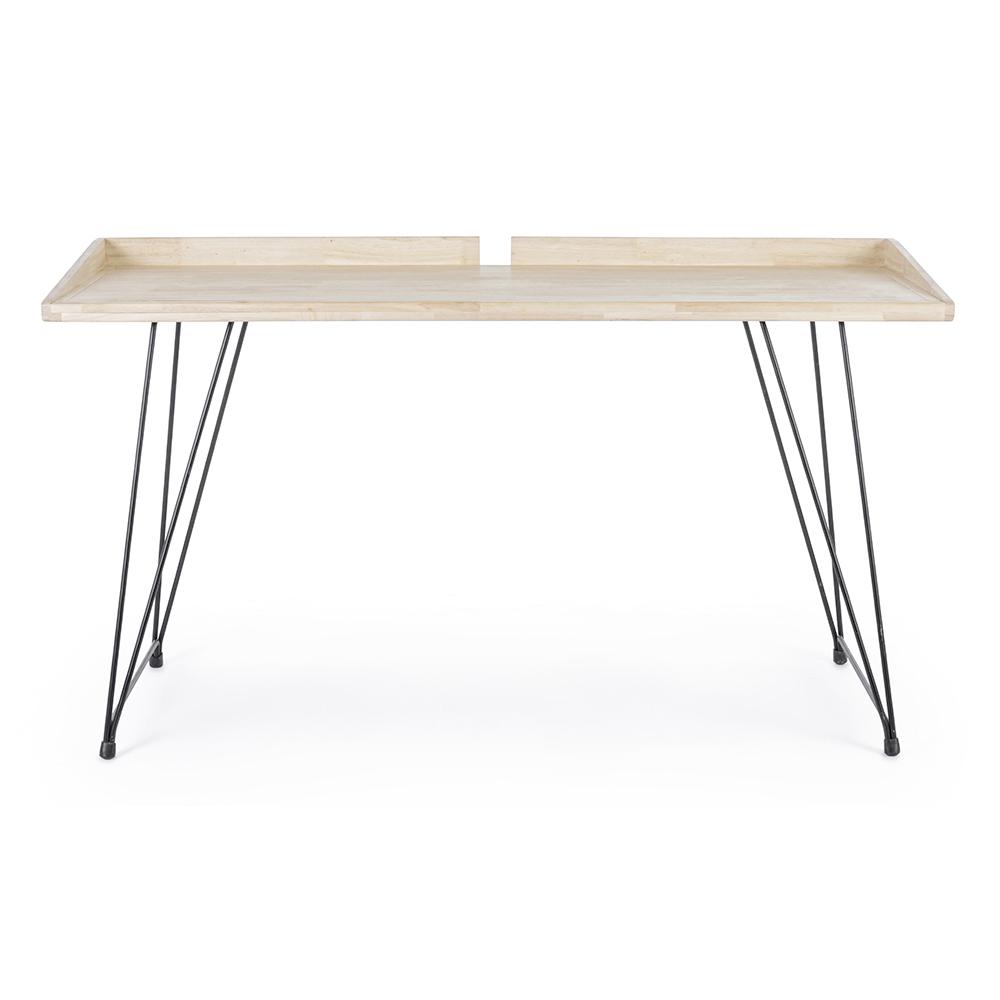 Scrivania di design in acciaio e piano in rubberwood, stile industriale.
