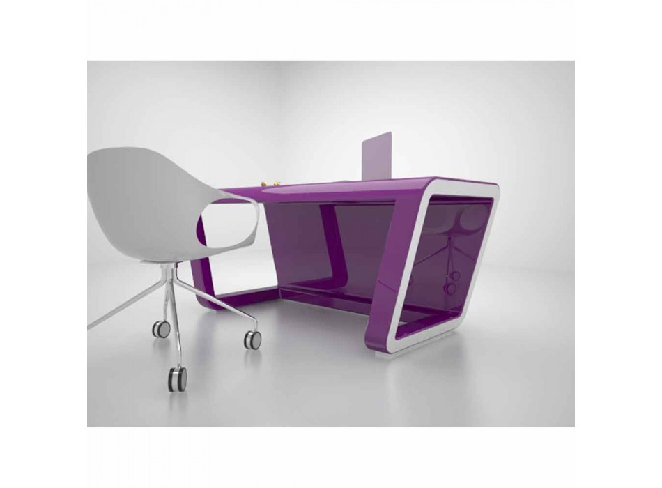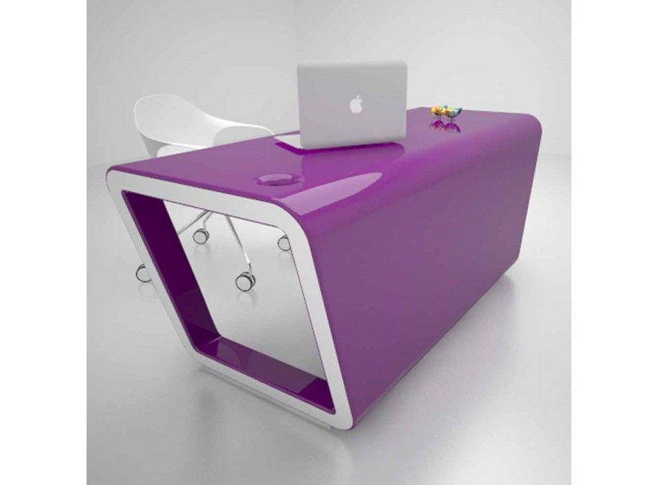 Scrivania dal design unico e originale, struttura monolitica, finitura laccata in doppia colorazione , con foro passa cavi effetto cratere.