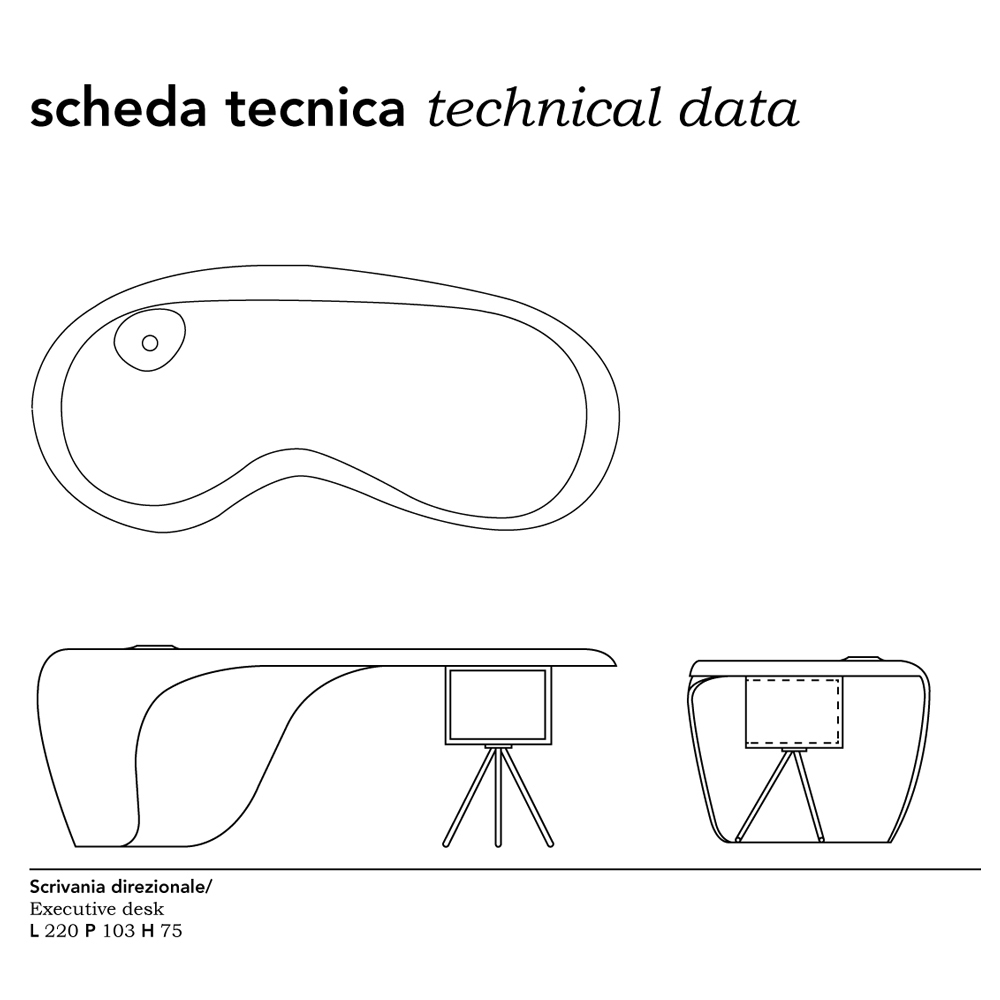 Scrivania dal design originale e moderno, caratterizzata da linee semplici e sinuose.