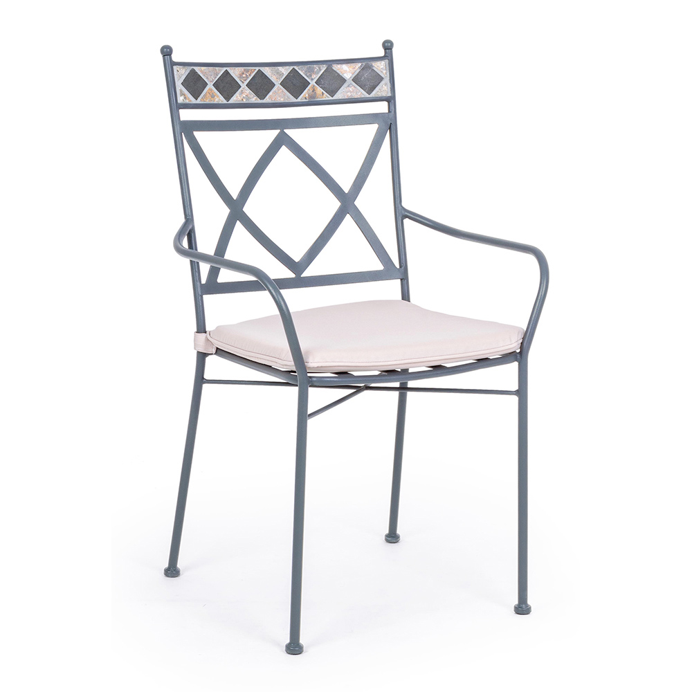 Sedia da esterno impilabile disponibile con o senza braccioli, in acciaio, articolo da giardino.