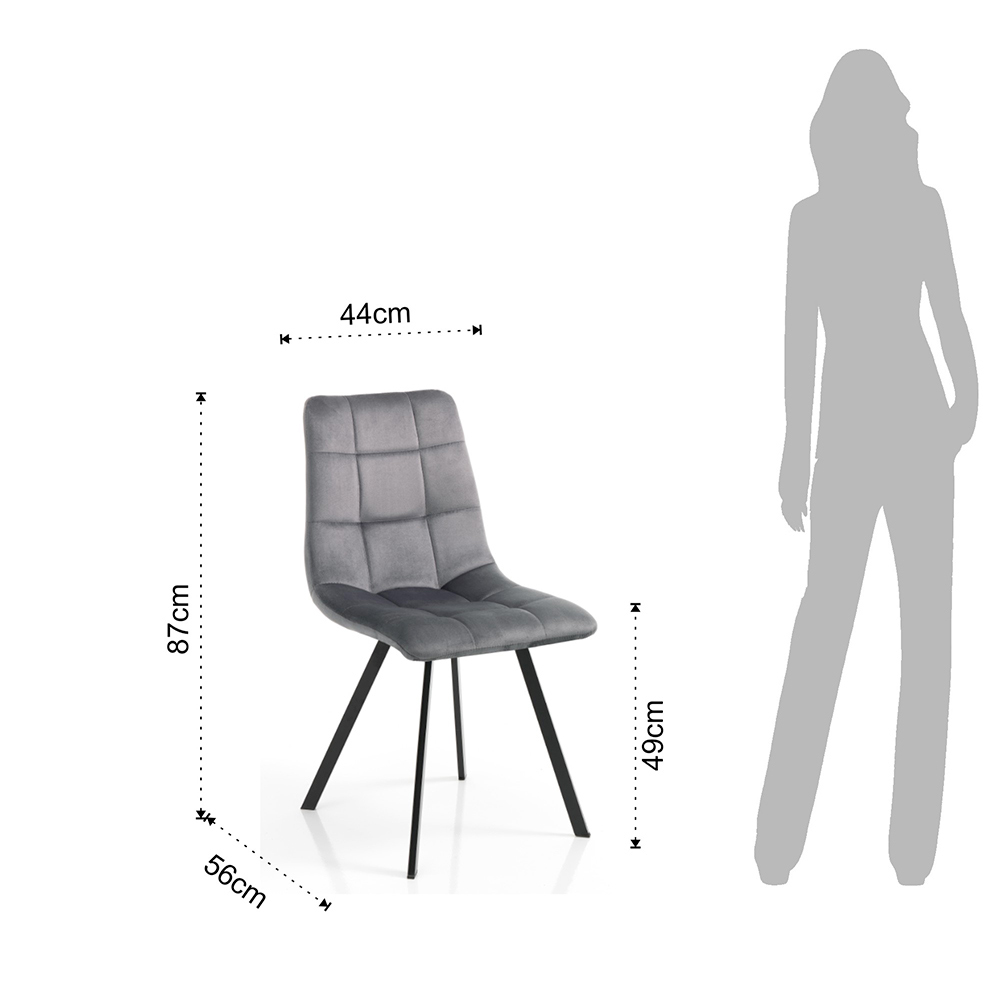 Sedia per sala da pranzo o cucina in metallo e microfibra effetto velluto, 4 pezzi.