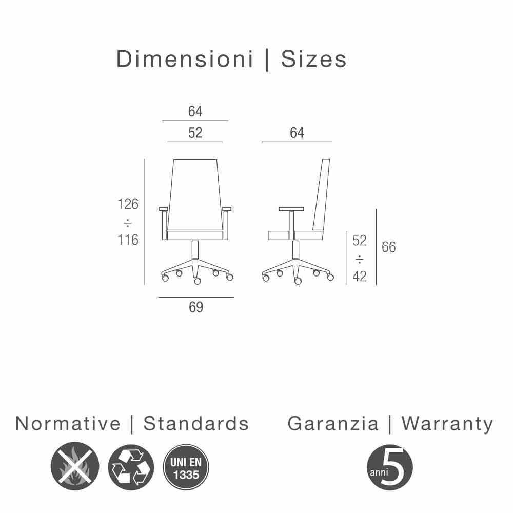 Debora è una sedia direzionale da ufficio, dal design moderno, realizzata in Italia.