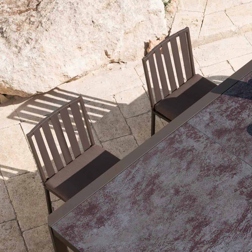 sedia da esterno si caratterizza per l'alternanza di vuoti e pieni che crea un aspetto visivo leggero e contemporaneo.