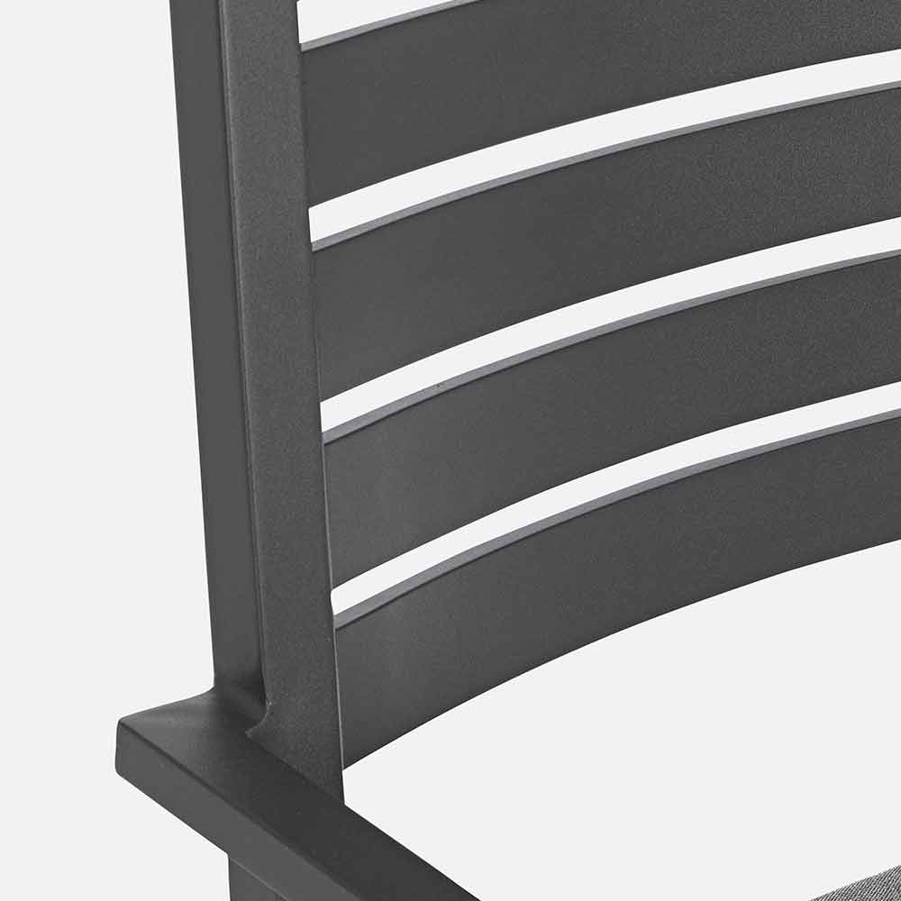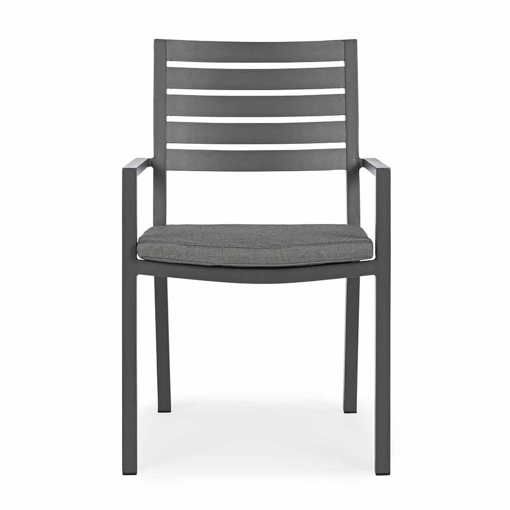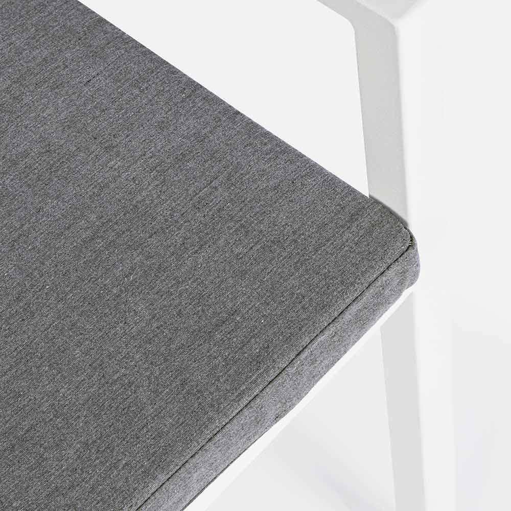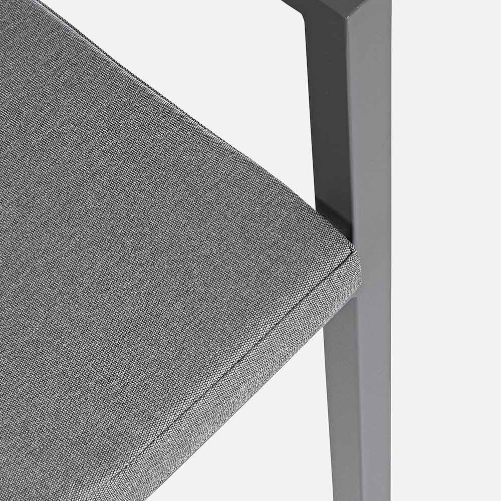 Struttura in alluminio, verniciata a polvere (poliestere), cuscini sfoderabili con tessuto Spun Poly (poliestere). Impilabile.