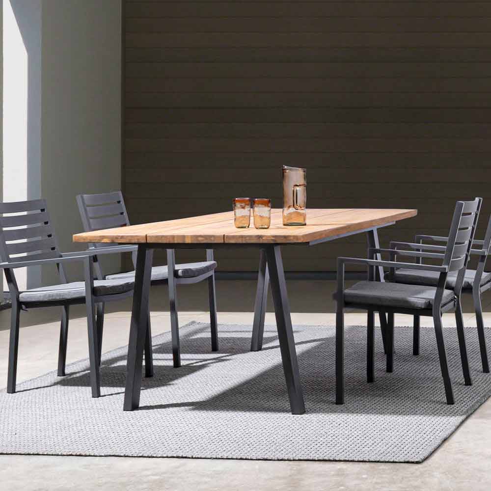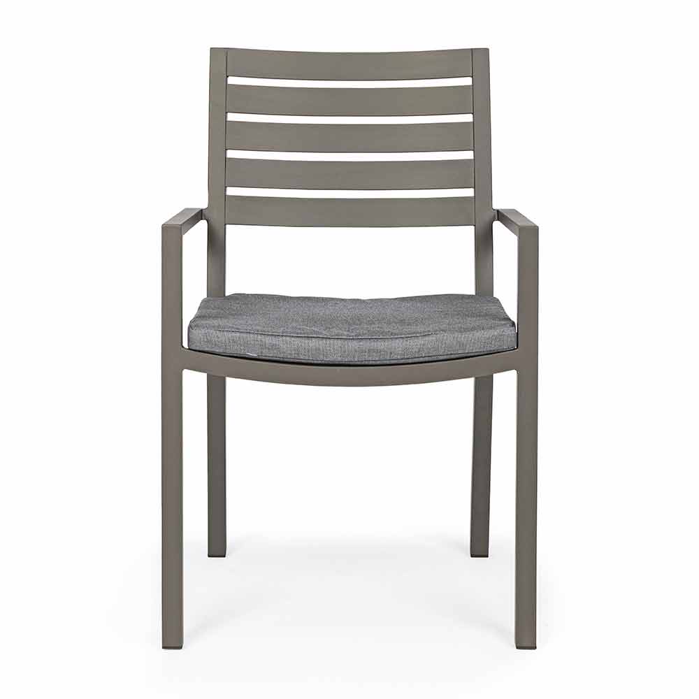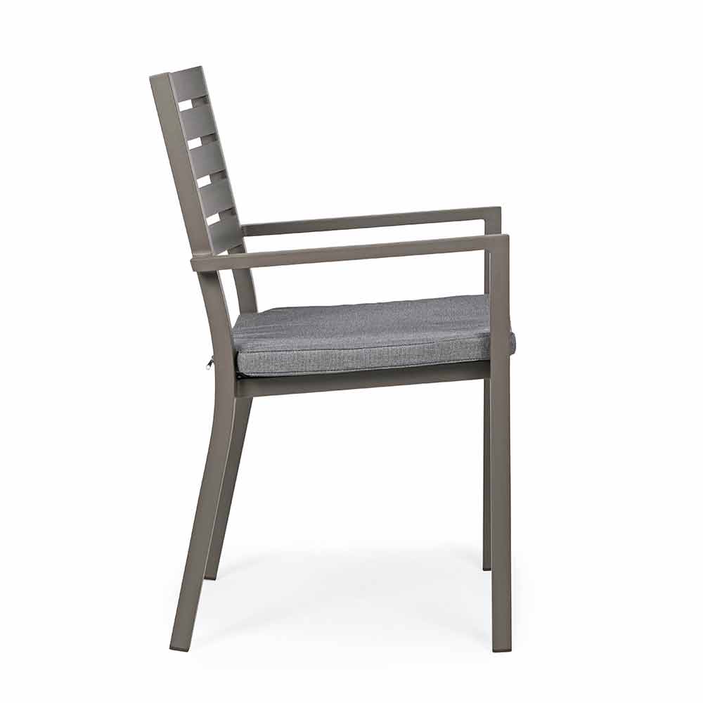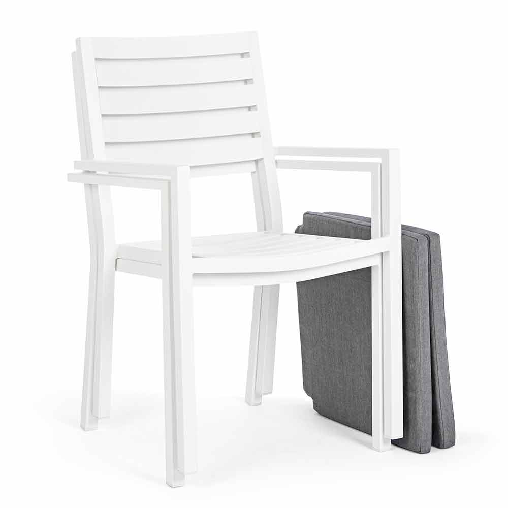 Struttura in alluminio, verniciata a polvere (poliestere), cuscini sfoderabili con tessuto Spun Poly (poliestere). Impilabile.