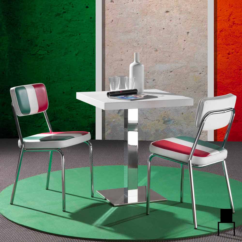 Ciascuna sedie riprende con il suo design uno stile anni 50', oltre al ricordo della nazione italiana.