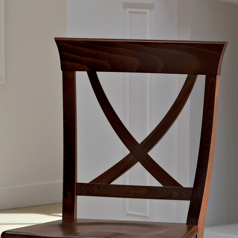 legno di faggio massello disponibile in varie finiture con schienale incrociato.