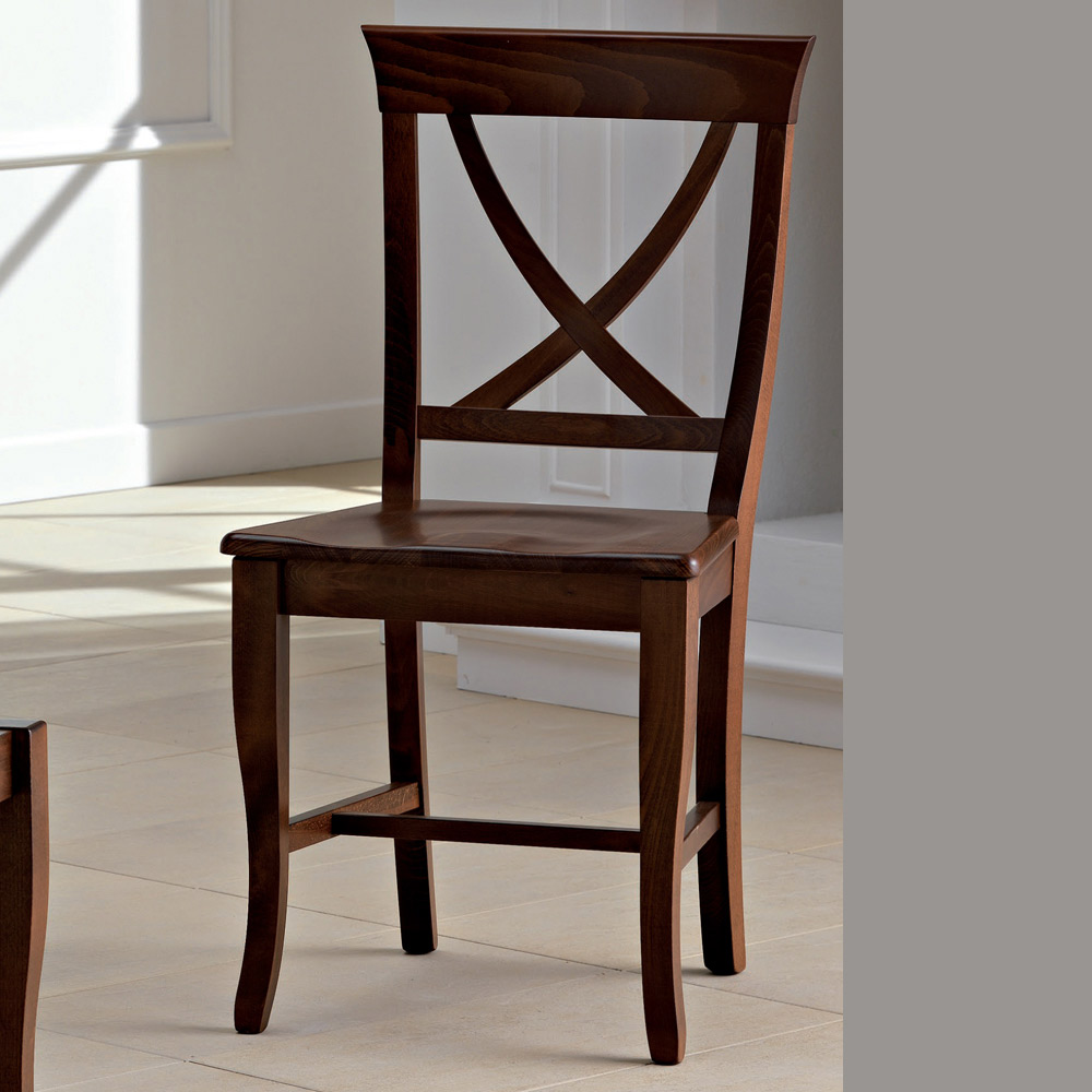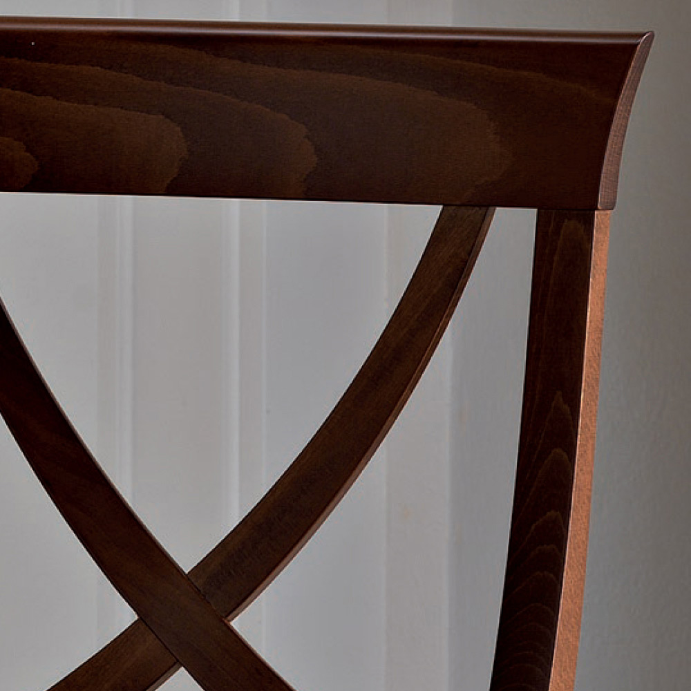 Sedia in legno massello con schienale incrociato, lusso made in Italy.