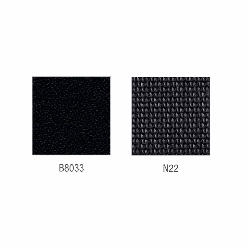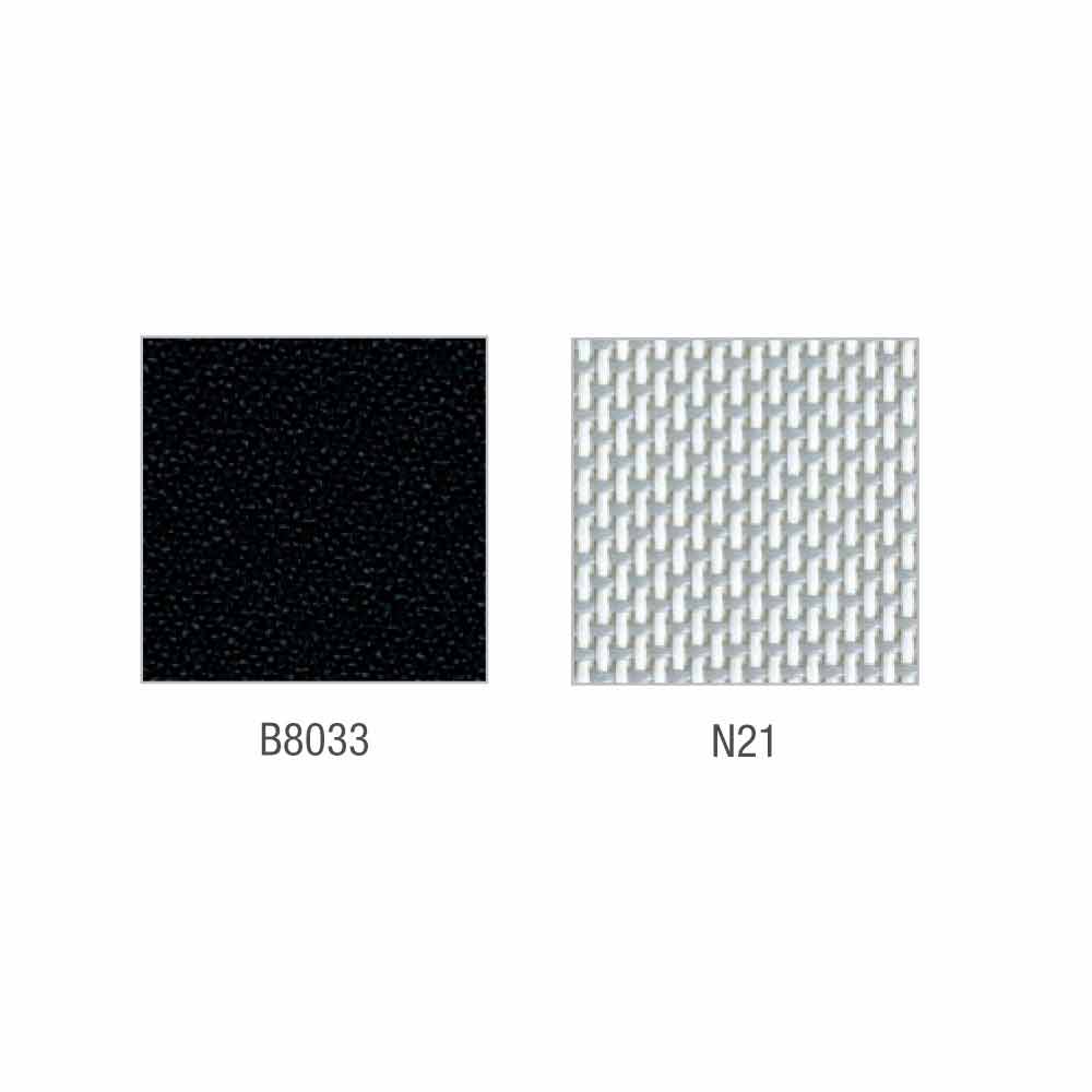 La sua base a 5 razze è realizzata in nylon PA6 caricato al 30% fibra vetro, colore nero, certificata ANSI-BIFMA;ruote in nylon Ø50 frenate.